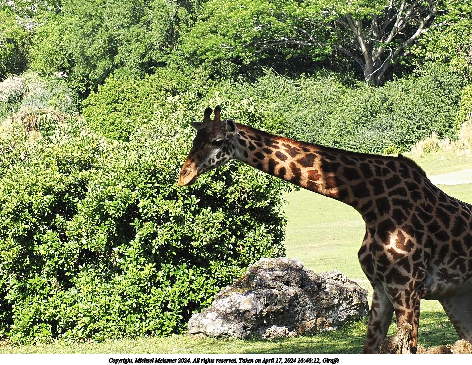 Picture #12: Giraffe #8 Thumb: 480x360, 80,940 bytes (80K) Small: 960x743, 304,107 bytes (297K), (html file) Copyright, Michael Meissner 2024, All rights reserved OM OM1 camera with Olympus-m43 12-200mm f/3.5-6.3 lens f/5.4, ISO 200, 1/80 sec, 42.0mm, auto mode, vivid color, matrix metering, IS Auto, subject dogs & cats, anti-shock 35mm equivalent focal length 84.0mm Programs used: crop, raw therapee Taken by Michael Meissner on April 21, 2024 08:08:42 Last modified on May 27, 2024 at 18:03 |