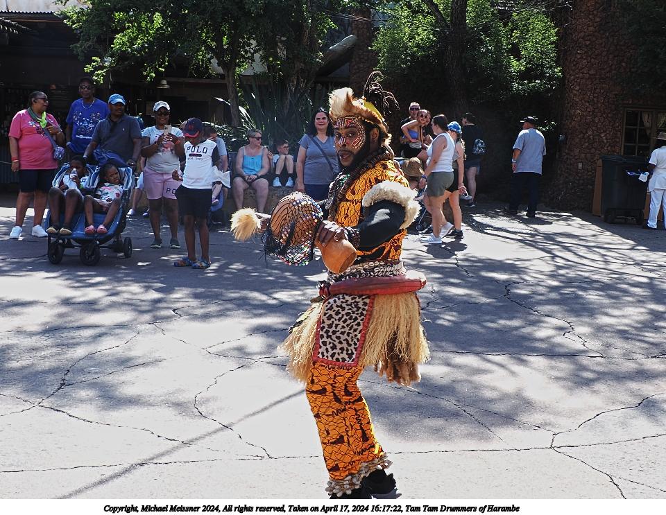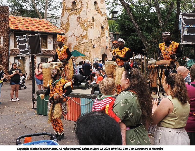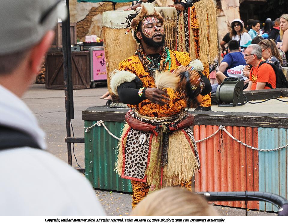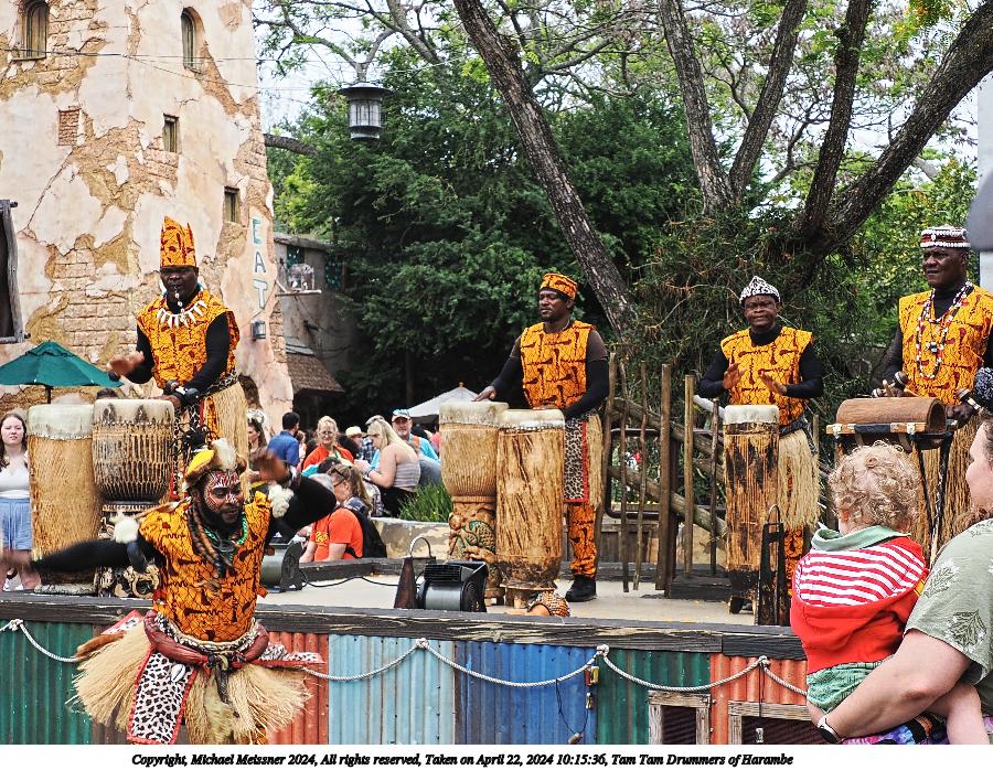 Picture #4: Tam Tam Drummers of Harambe #4 Thumb: 400x300, 63,596 bytes (63K) Small: 800x623, 202,703 bytes (198K), (html file) Copyright, Michael Meissner 2024, All rights reserved OM OM1 camera with Olympus-m43 12-200mm f/3.5-6.3 lens f/6.3, ISO 200, 1/160 sec, 15.0mm, auto mode, vivid color, center weight metering, IS Auto, anti-shock 35mm equivalent focal length 30.0mm Programs used: crop, raw therapee Taken by Michael Meissner on April 22, 2024 10:14:57 Last modified on May 12, 2024 at 16:04 |