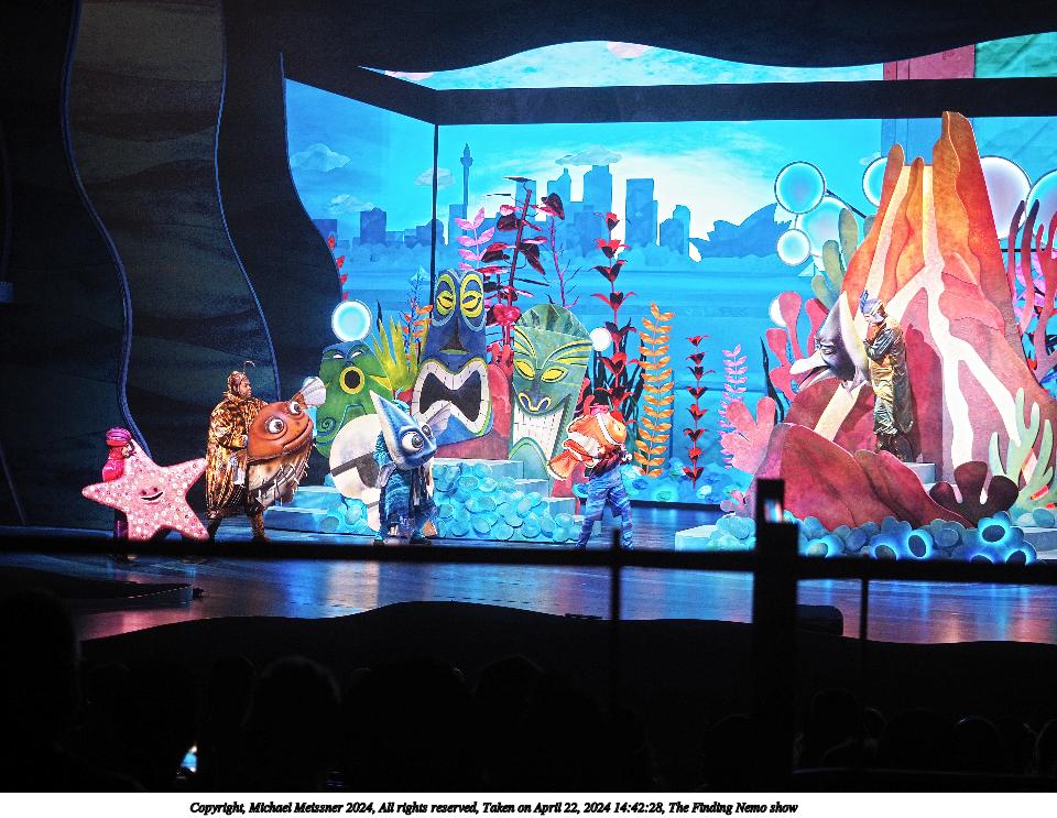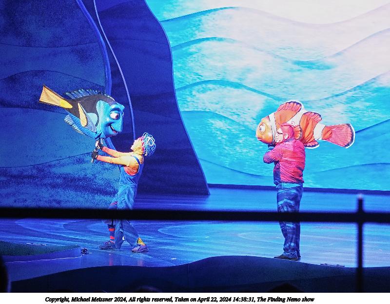 Picture #10: The Finding Nemo show #10 Thumb: 480x360, 60,267 bytes (59K) Small: 960x743, 188,633 bytes (185K), (html file) Copyright, Michael Meissner 2024, All rights reserved Olympus E-M5-III camera with Olympus-m43 12-40mm f/2.8 lens f/2.8, ISO 200, 1/60 sec, 35.0mm, auto mode, vivid color, SHQ, center weight metering, continous focus, IS Auto, face detection, anti-shock 35mm equivalent focal length 70.0mm Programs used: crop, raw therapee Taken by Michael Meissner on April 22, 2024 14:55:06 Last modified on May 18, 2024 at 21:22 |