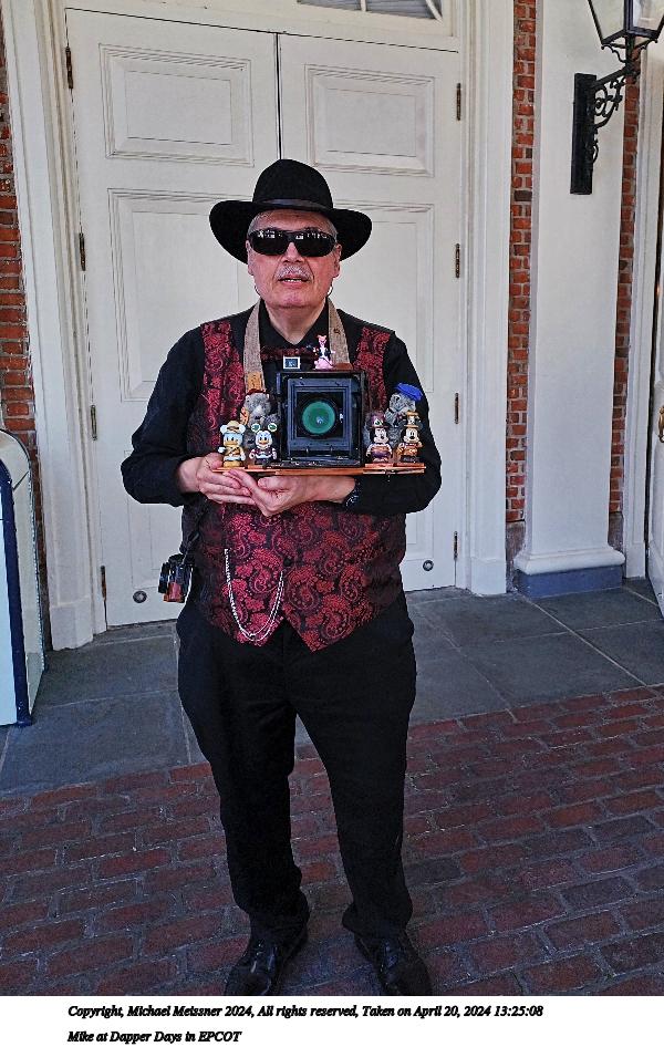 Picture #10: Mike at Dapper Days in EPCOT Thumb: 267x400, 25,003 bytes (25K) Small: 600x946, 113,170 bytes (111K), (html file) Copyright, Michael Meissner 2024, All rights reserved Samsung A32 5G phone f/1.8, ISO 40, 1/120 sec, 4.6mm, auto mode, spot metering 35mm equivalent focal length 25.0mm Programs used: raw therapee Taken by Michael Meissner on April 20, 2024 13:25:08 Last modified on April 29, 2024 at 22:10 This picture is one of my favorites. |