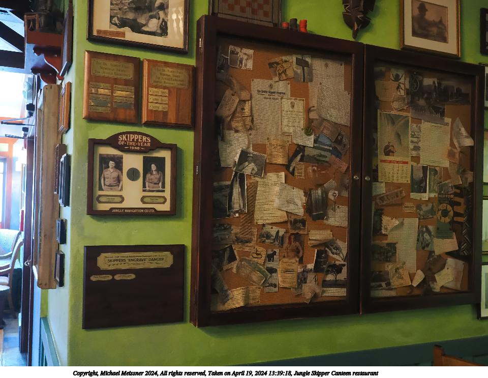 Picture #2: Jungle Skipper Canteen restaurant #2 Thumb: 400x200, 40,157 bytes (40K) Small: 800x423, 85,830 bytes (84K), (html file) Copyright, Michael Meissner 2024, All rights reserved OM OM1 camera with Olympus-m43 12-40mm f/2.8 lens f/2.8, ISO 4000, 1/60 sec, 17.0mm, auto mode, vivid color, matrix metering, continous focus, IS Auto, face detection, anti-shock 35mm equivalent focal length 34.0mm Programs used: crop, gimp, raw therapee Taken by Michael Meissner on April 19, 2024 13:38:44 Last modified on May 30, 2024 at 10:13 |
