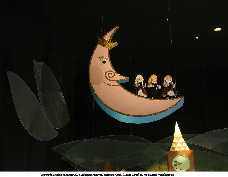 Picture #2: It's a Small World after all #2 Thumb: 480x360, 37,713 bytes (37K) Small: 960x743, 73,602 bytes (72K), (html file) Copyright, Michael Meissner 2024, All rights reserved OM OM1 camera with Olympus-m43 12-40mm f/2.8 lens f/2.8, ISO 12800, 1/60 sec, 35.0mm, auto mode, vivid color, matrix metering, IS Auto, face detection, anti-shock 35mm equivalent focal length 70.0mm Programs used: crop, raw therapee Taken by Michael Meissner on April 19, 2024 18:56:43 Last modified on May 30, 2024 at 21:57 |