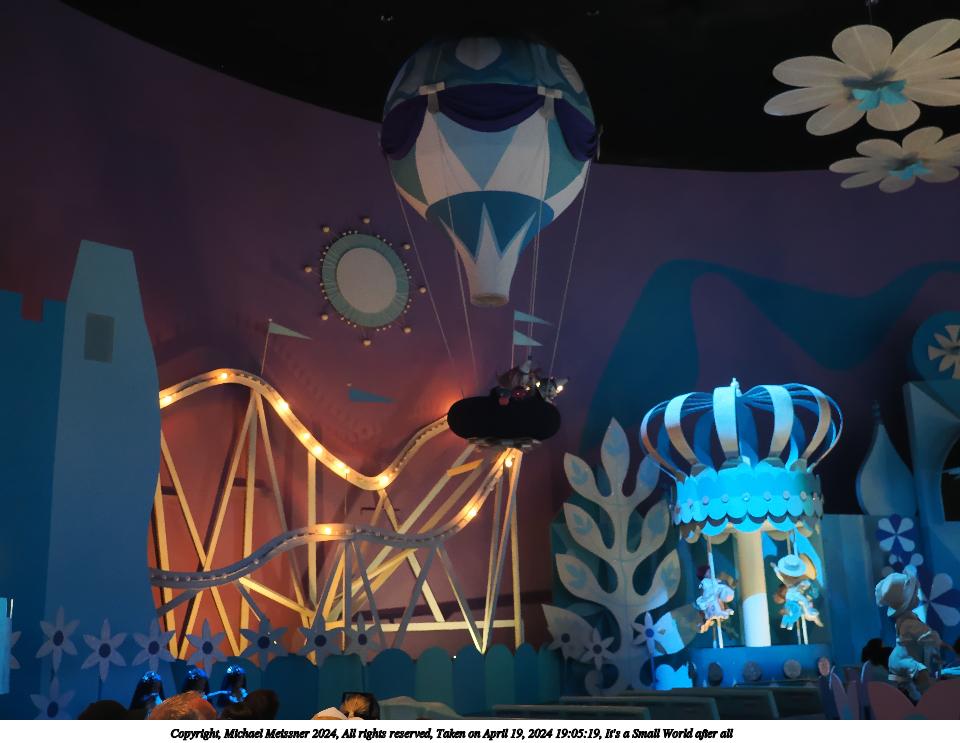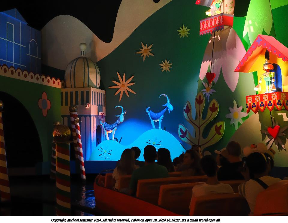 Picture #8: It's a Small World after all #8 Thumb: 480x360, 53,180 bytes (52K) Small: 960x743, 114,176 bytes (112K), (html file) Copyright, Michael Meissner 2024, All rights reserved OM OM1 camera with Olympus-m43 12-40mm f/2.8 lens f/2.8, ISO 4000, 1/60 sec, 17.0mm, auto mode, vivid color, matrix metering, IS Auto, face detection, anti-shock 35mm equivalent focal length 34.0mm Programs used: crop, raw therapee Taken by Michael Meissner on April 19, 2024 19:00:37 Last modified on May 30, 2024 at 21:59 |
