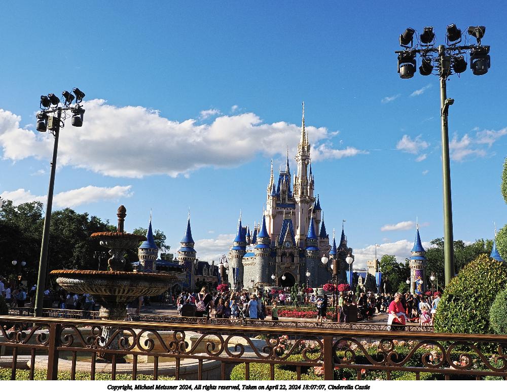 Picture #2: Cinderella Castle Thumb: 480x360, 61,225 bytes (60K) Small: 960x743, 180,977 bytes (177K), (html file) Copyright, Michael Meissner 2024, All rights reserved OM OM1 camera with Olympus-m43 12-40mm f/2.8 lens f/6.3, ISO 200, 1/320 sec, 17.0mm, auto mode, vivid color, matrix metering, IS Auto, face detection, anti-shock 35mm equivalent focal length 34.0mm Programs used: crop, raw therapee Taken by Michael Meissner on April 19, 2024 18:40:06 Last modified on May 30, 2024 at 09:31 |
