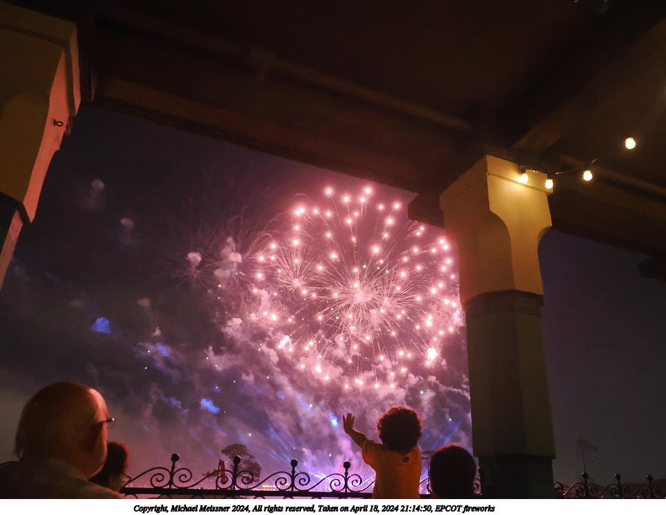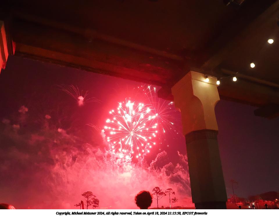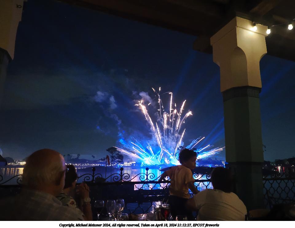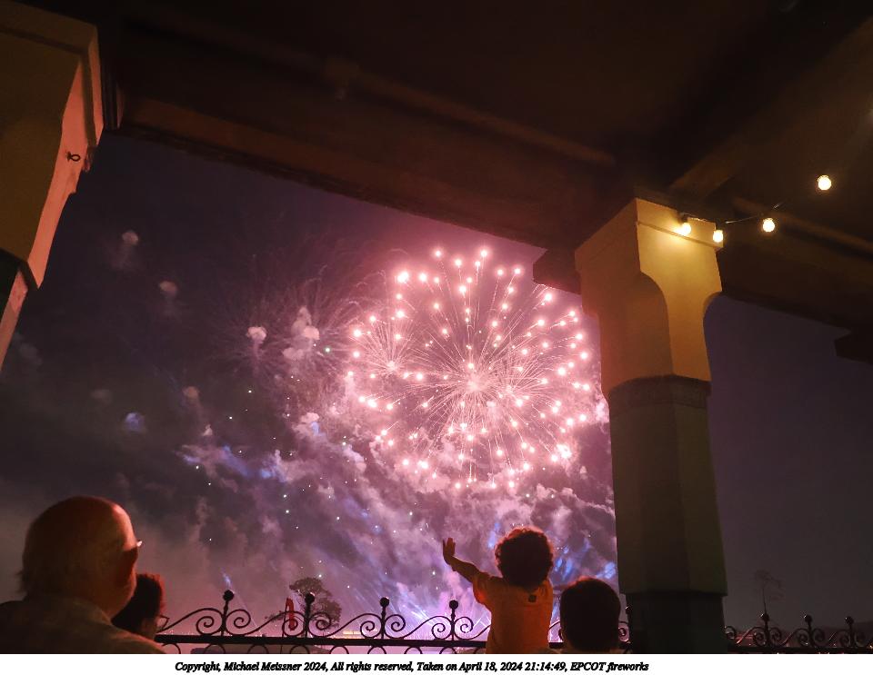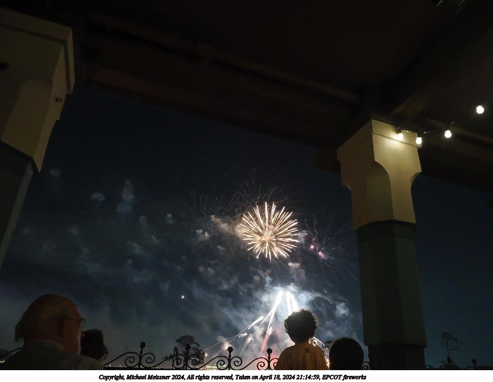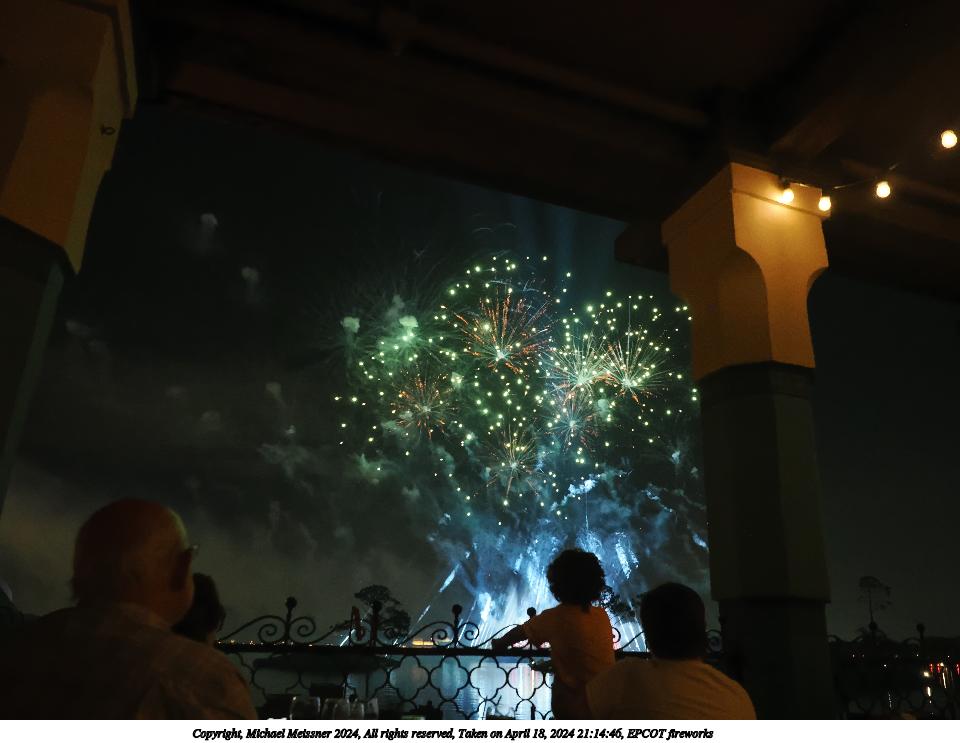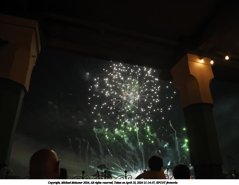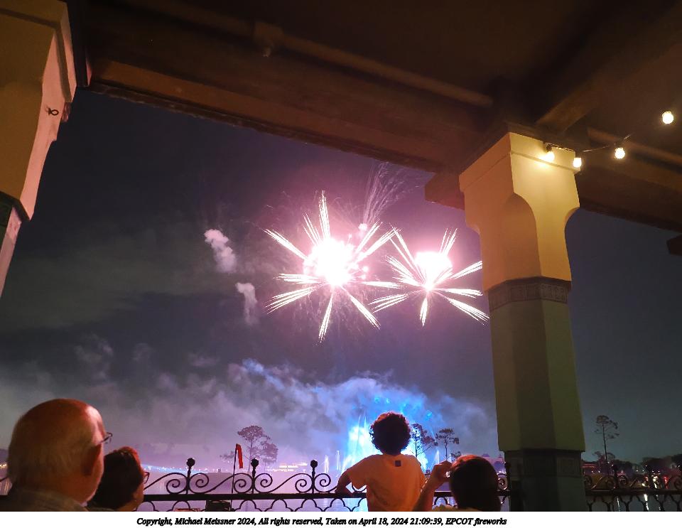 Picture #8: EPCOT fireworks #8 Thumb: 480x360, 44,305 bytes (44K) Small: 960x743, 92,879 bytes (91K), (html file) Copyright, Michael Meissner 2024, All rights reserved OM OM1 camera with Olympus-m43 12-40mm f/2.8 lens f/2.8, ISO 12800, 1/40 sec, 12.0mm, auto mode, vivid color, matrix metering, continous focus, IS Auto, face detection, anti-shock 35mm equivalent focal length 24.0mm Programs used: crop, raw therapee Taken by Michael Meissner on April 18, 2024 21:05:24 Last modified on May 31, 2024 at 19:44 |
