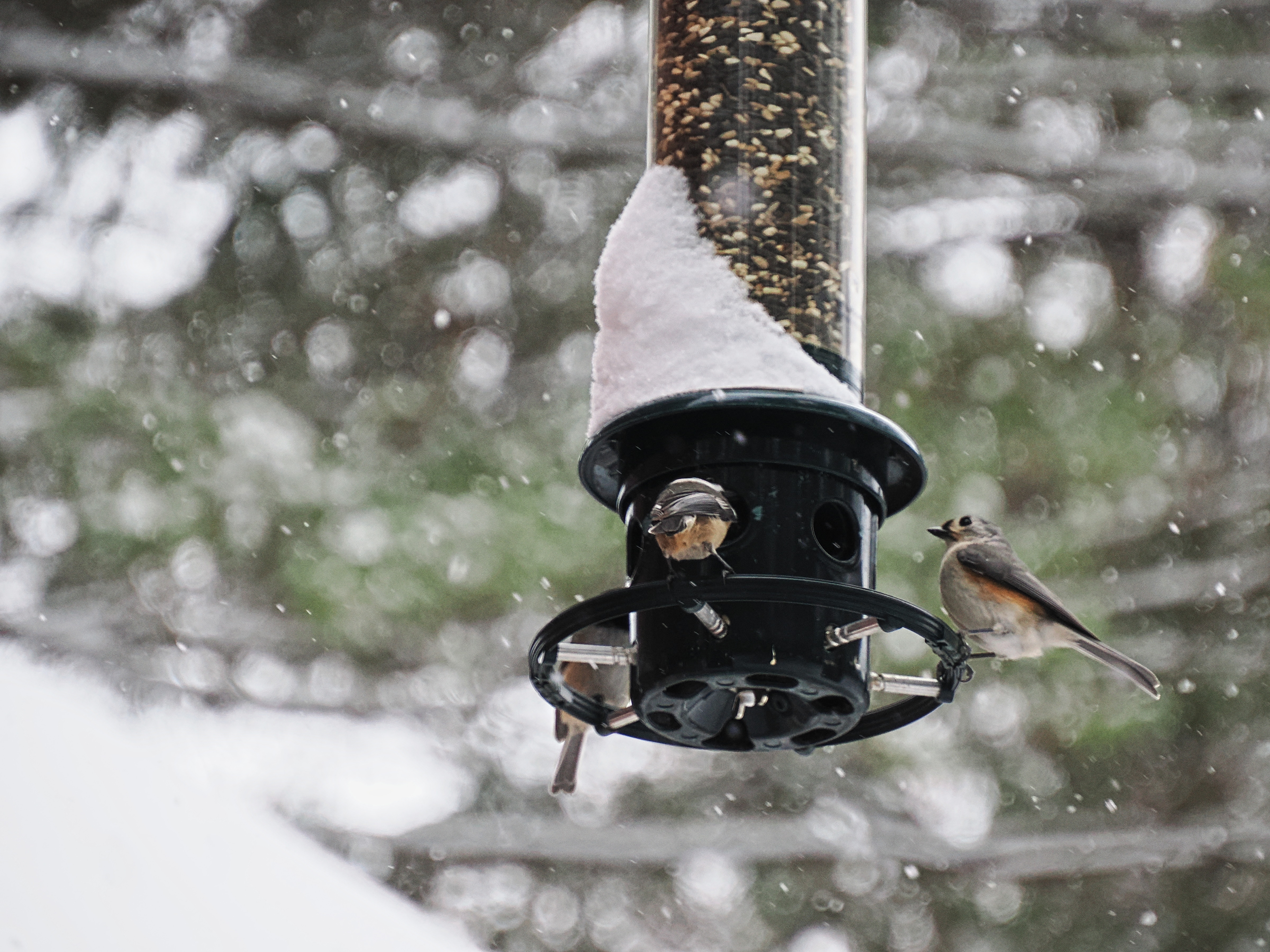 Picture #9: Tufted titmice at our feeder Small: 960x743, 129,240 bytes (127K), (html file) Large: 4800x3600, 4,554,435 bytes (4.3M), (html file) Copyright, Michael Meissner 2025, All rights reserved OM OM1 camera with Olympus-m43 12-200mm f/3.5-6.3 lens f/6.3, ISO 2000, 1/320 sec, 162.0mm, auto mode, vivid color, matrix metering, IS Auto 35mm equivalent focal length 325.0mm Programs used: crop, raw therapee Taken by Michael Meissner on January 11, 2025 15:10:31 Last modified on January 11, 2025 at 17:11 |