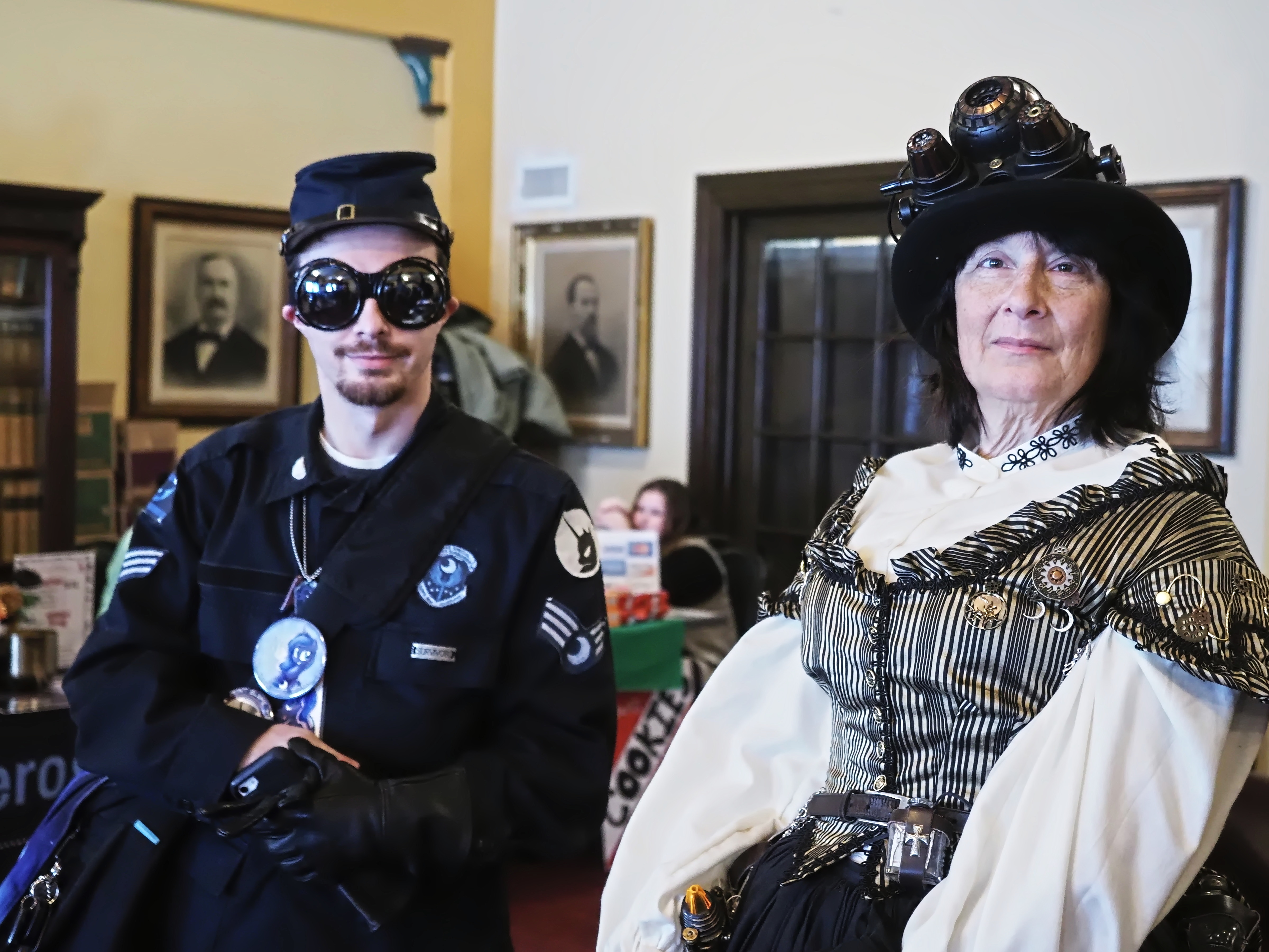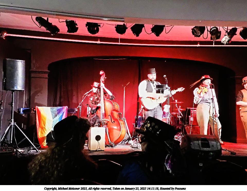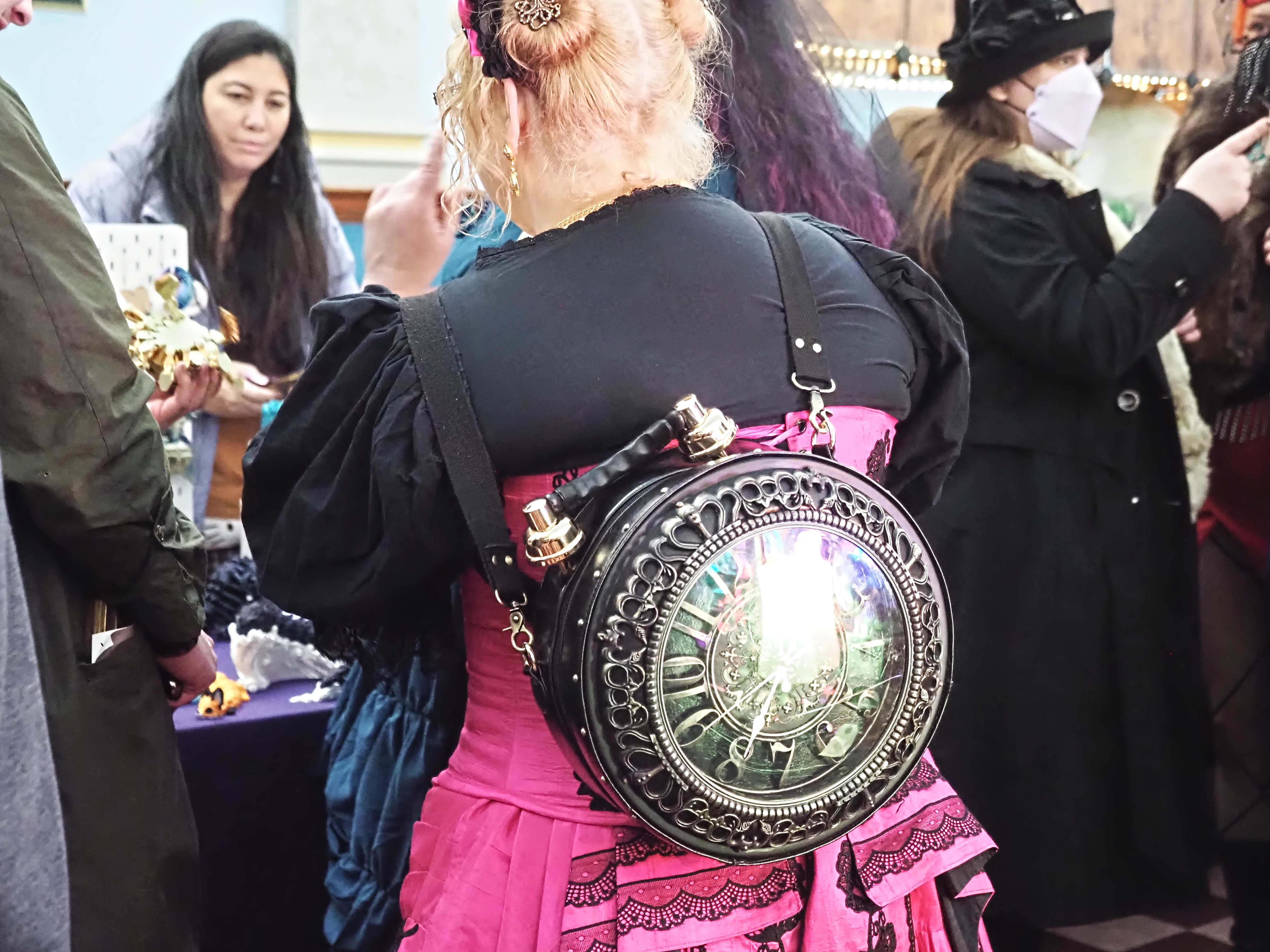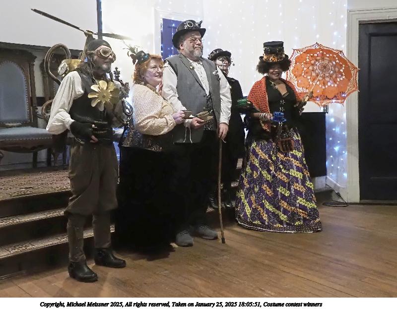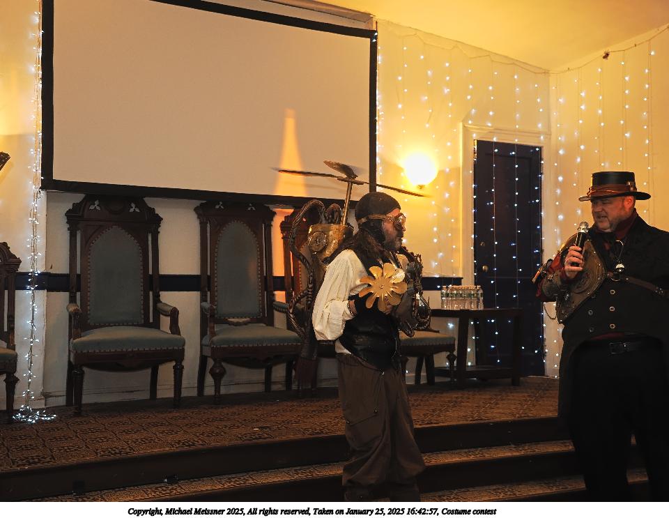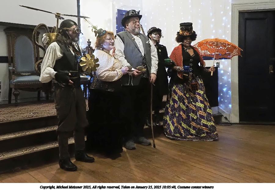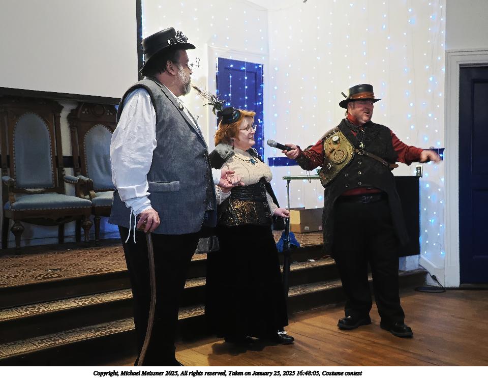 Picture #63: Steampuks Small: 960x743, 183,251 bytes (179K), (html file) Large: 4800x3600, 3,782,070 bytes (3.6M), (html file) Copyright, Michael Meissner 2025, All rights reserved Olympus E-M1-II camera with Olympus-m43 12-40mm f/2.8 lens f/2.8, ISO 2500, 1/60 sec, 12.0mm, auto mode, natural color, SHQ, matrix metering, digital zoom x2, continous focus, IS Auto, both eyes priority, face detection, anti-shock 35mm equivalent focal length 48.0mm, digital zoom x2 Programs used: crop, raw therapee Taken by Michael Meissner on January 25, 2025 14:27:46 Last modified on February 01, 2025 at 20:00 |