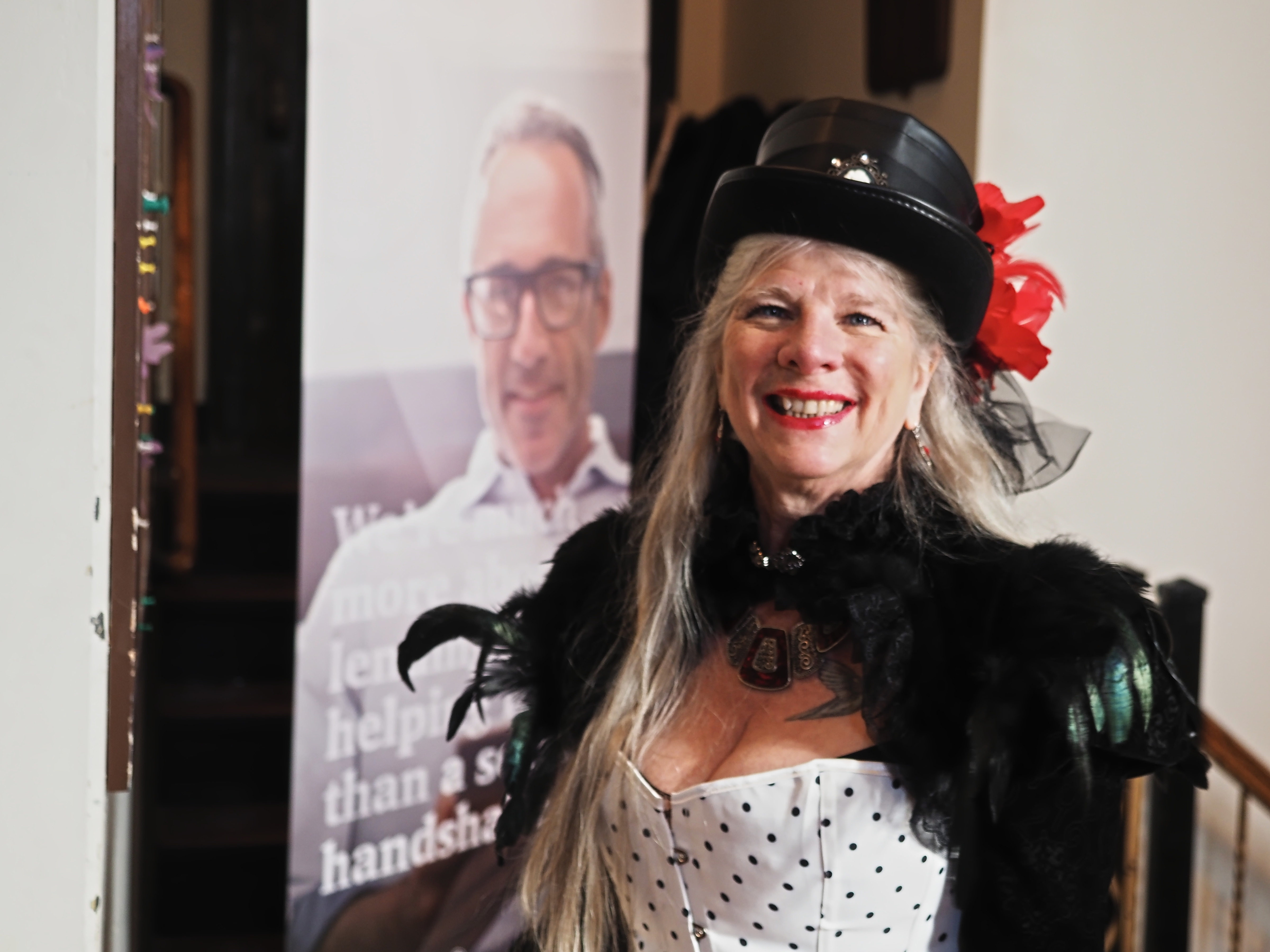Picture #97: Costume contest #20 Small: 960x743, 147,150 bytes (144K), (html file) Large: 4800x3600, 2,848,044 bytes (2.7M), (html file) Copyright, Michael Meissner 2025, All rights reserved OM OM1 camera with Olympus-m43 12-40mm f/2.8 lens f/2.8, ISO 200, flash, 1/60 sec, 15.0mm, auto mode, vivid color, matrix metering, continous focus, IS Auto, face detection, anti-shock 35mm equivalent focal length 30.0mm Programs used: crop, raw therapee Taken by Michael Meissner on January 25, 2025 17:06:45 Last modified on February 01, 2025 at 20:19 |