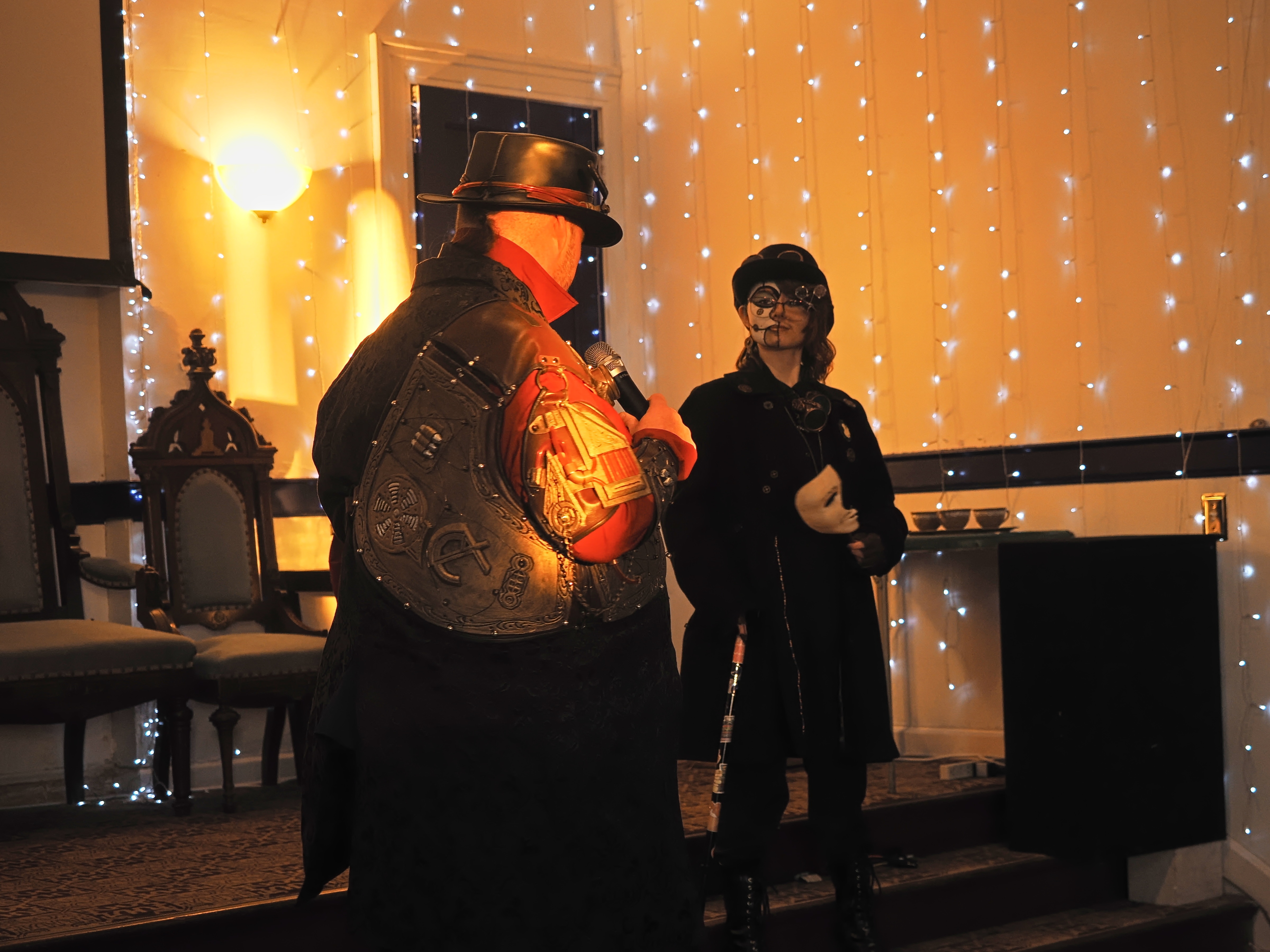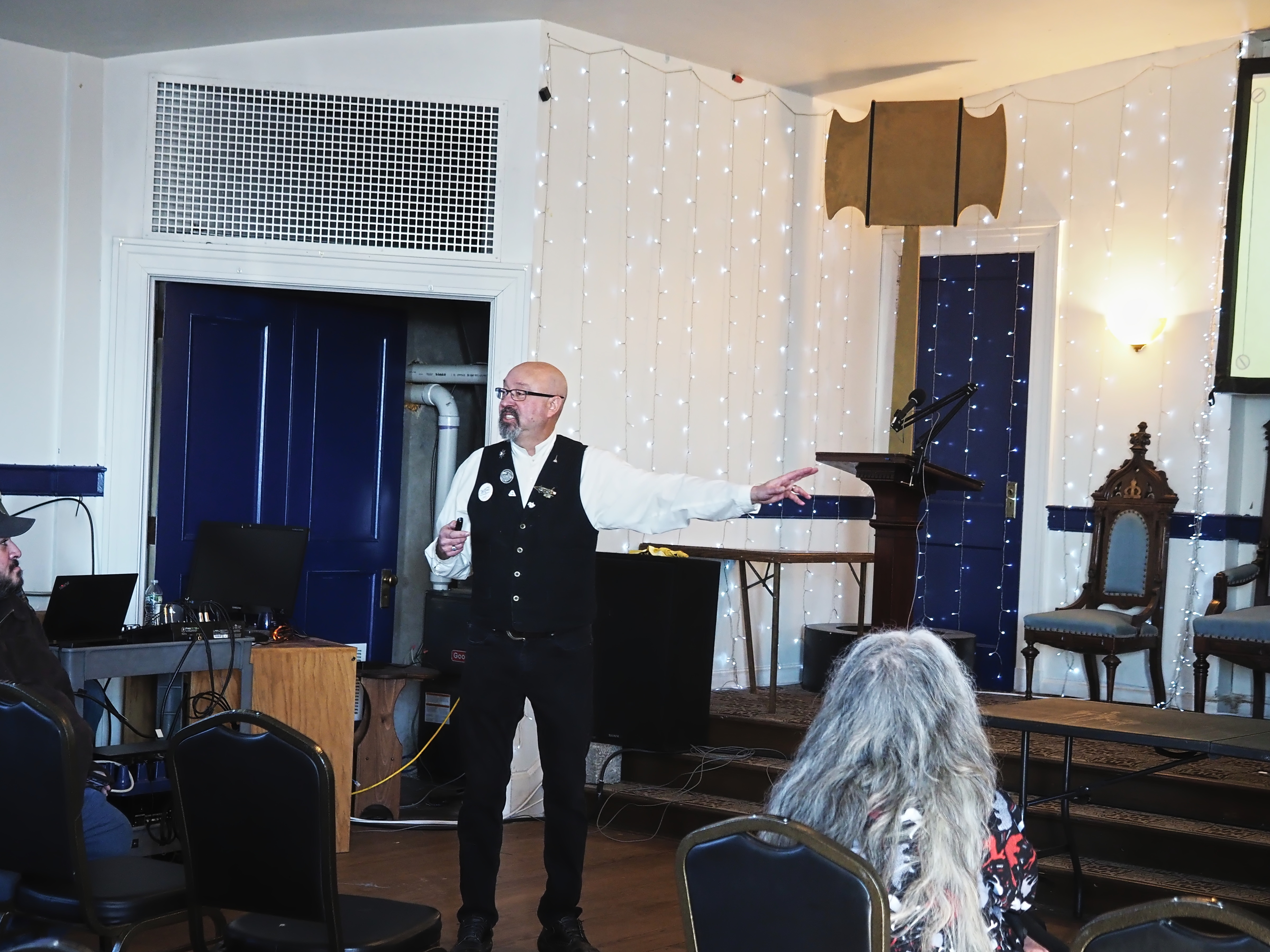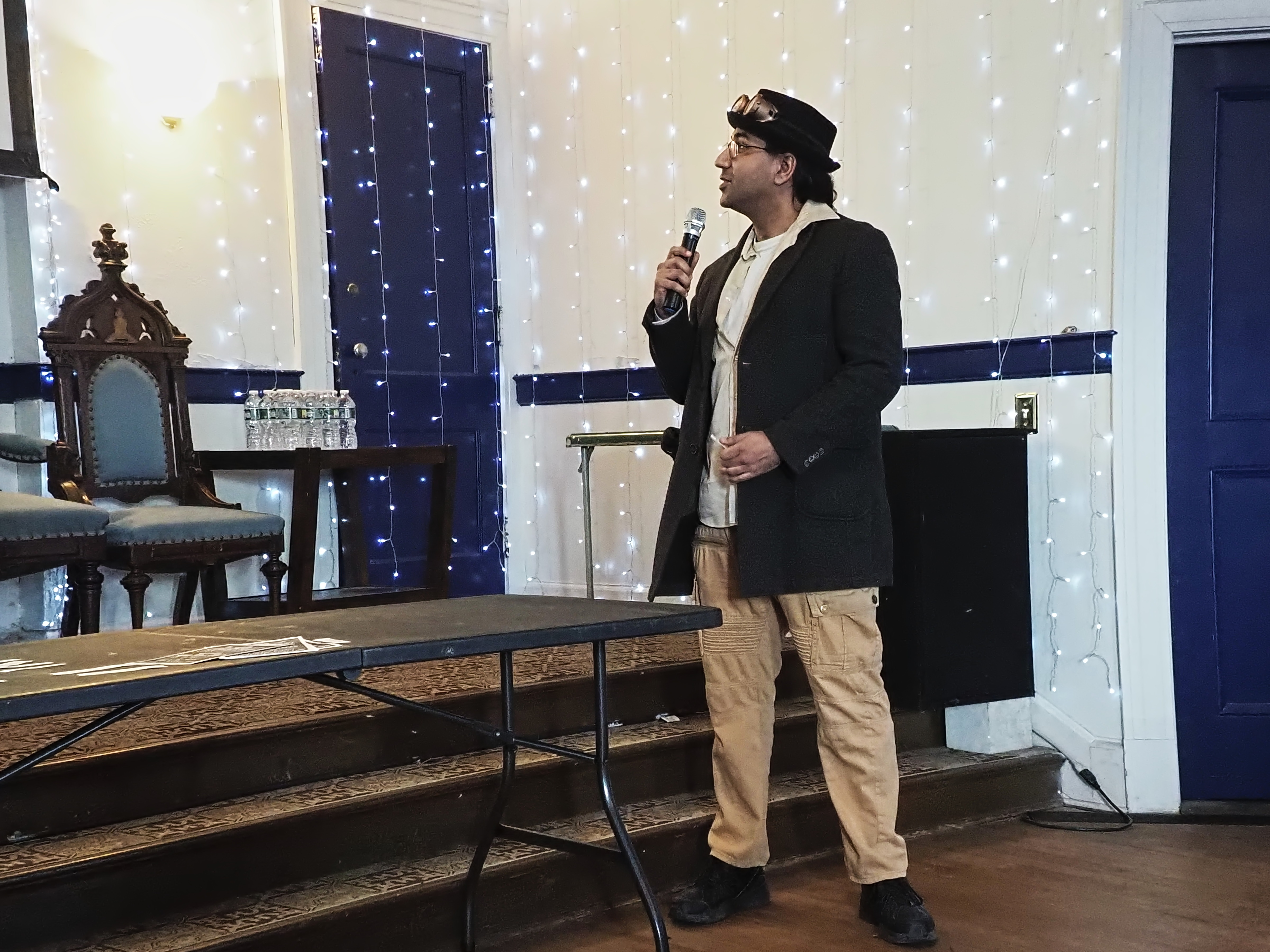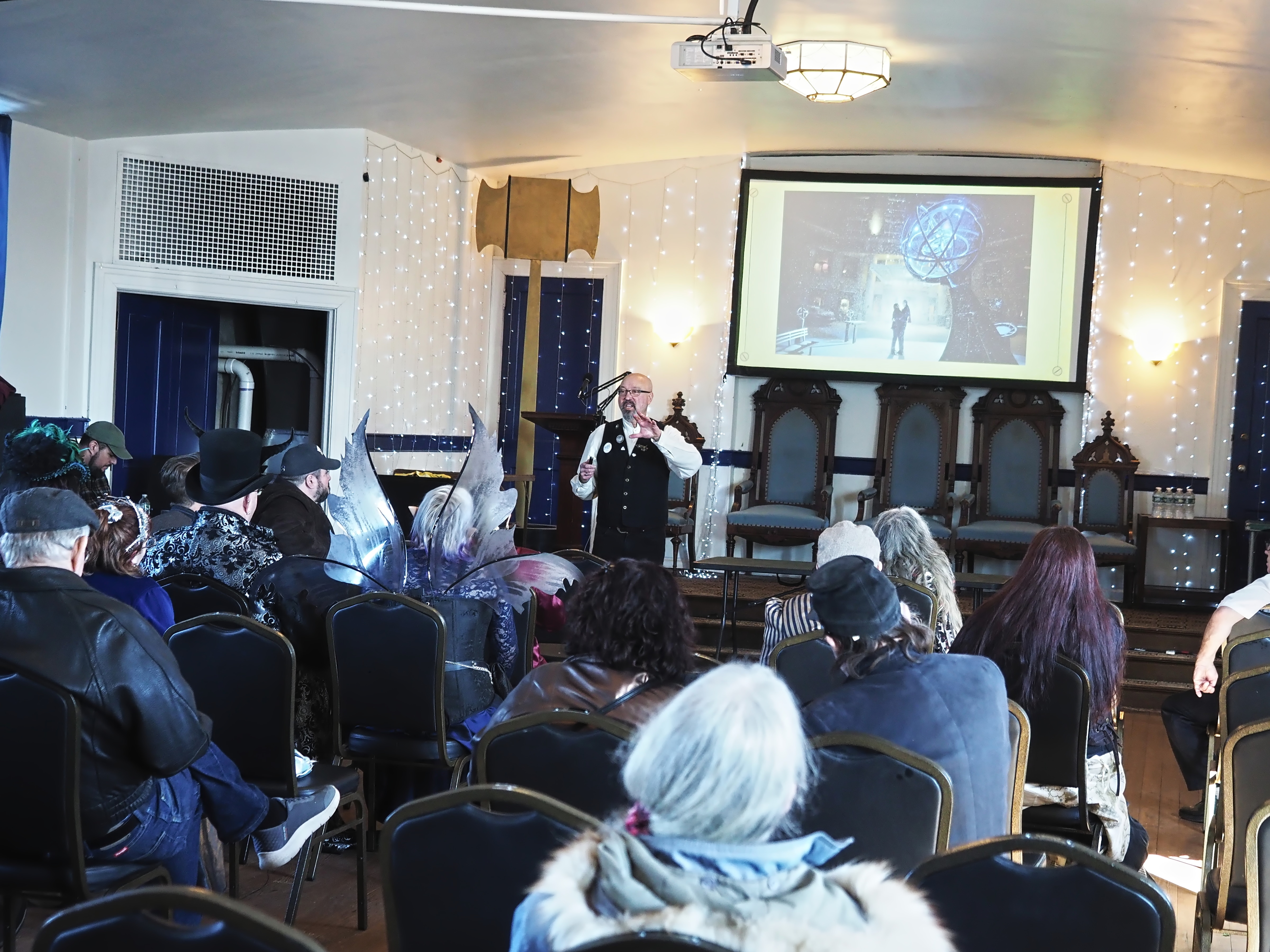 Picture #67: Steampunk Powerpoint Karaoke audience Small: 960x743, 157,274 bytes (154K), (html file) Large: 4800x3600, 3,199,237 bytes (3.1M), (html file) Copyright, Michael Meissner 2025, All rights reserved OM OM1 camera with Olympus-m43 12-40mm f/2.8 lens f/2.8, ISO 2500, 1/60 sec, 12.0mm, auto mode, vivid color, matrix metering, continous focus, IS Auto, face detection, anti-shock 35mm equivalent focal length 24.0mm Programs used: crop, raw therapee Taken by Michael Meissner on January 25, 2025 15:10:35 Last modified on February 01, 2025 at 20:02 |