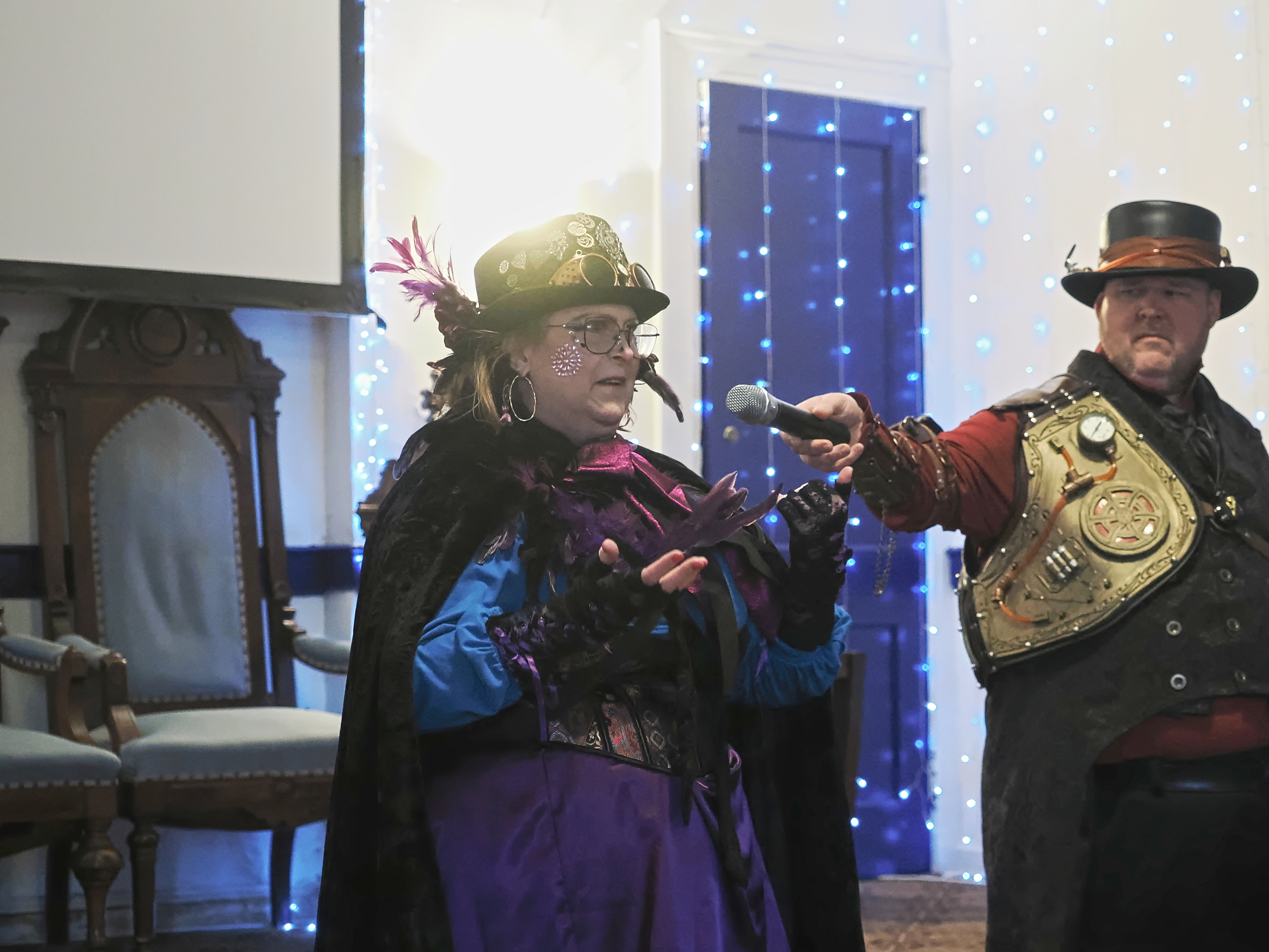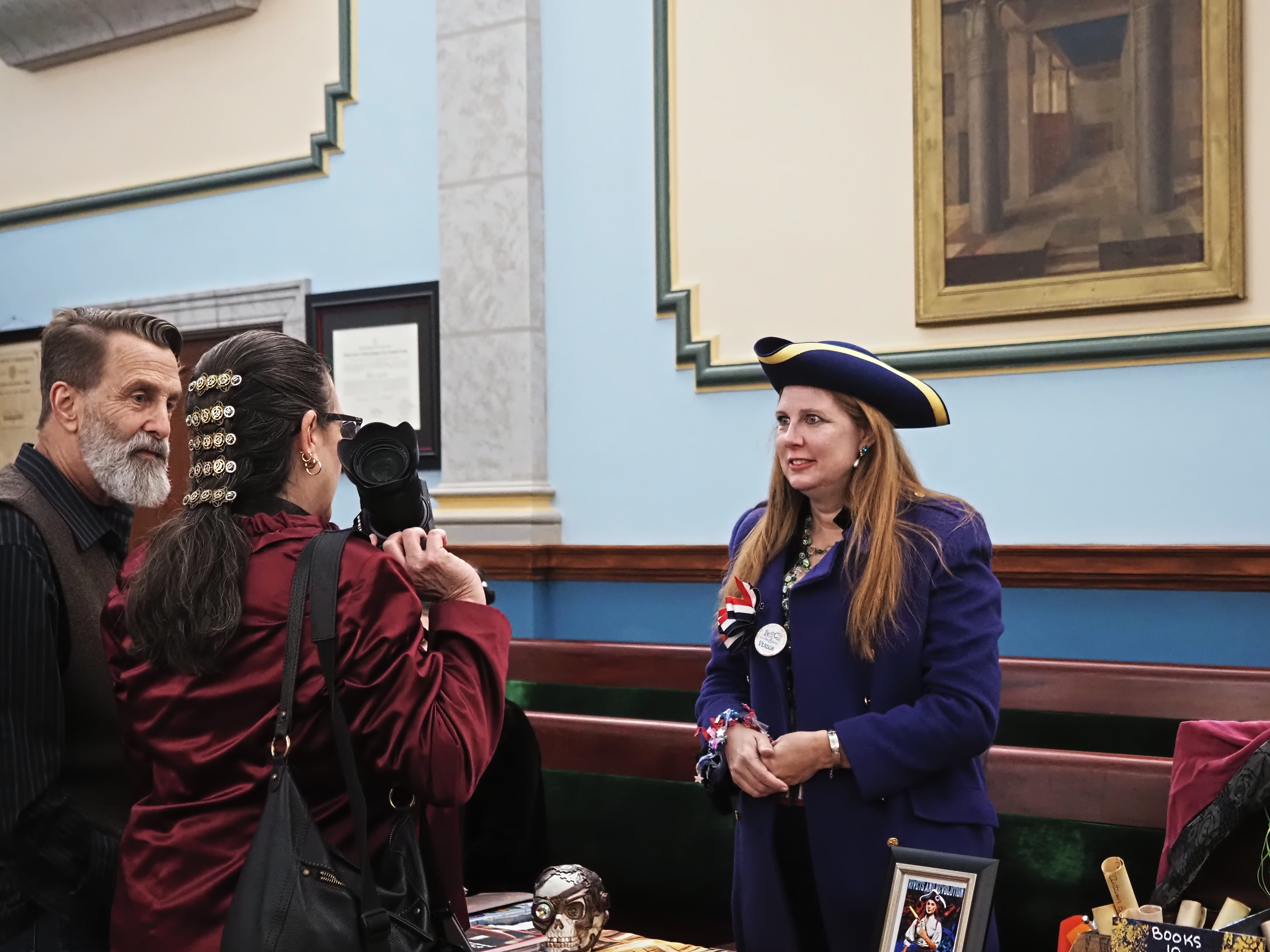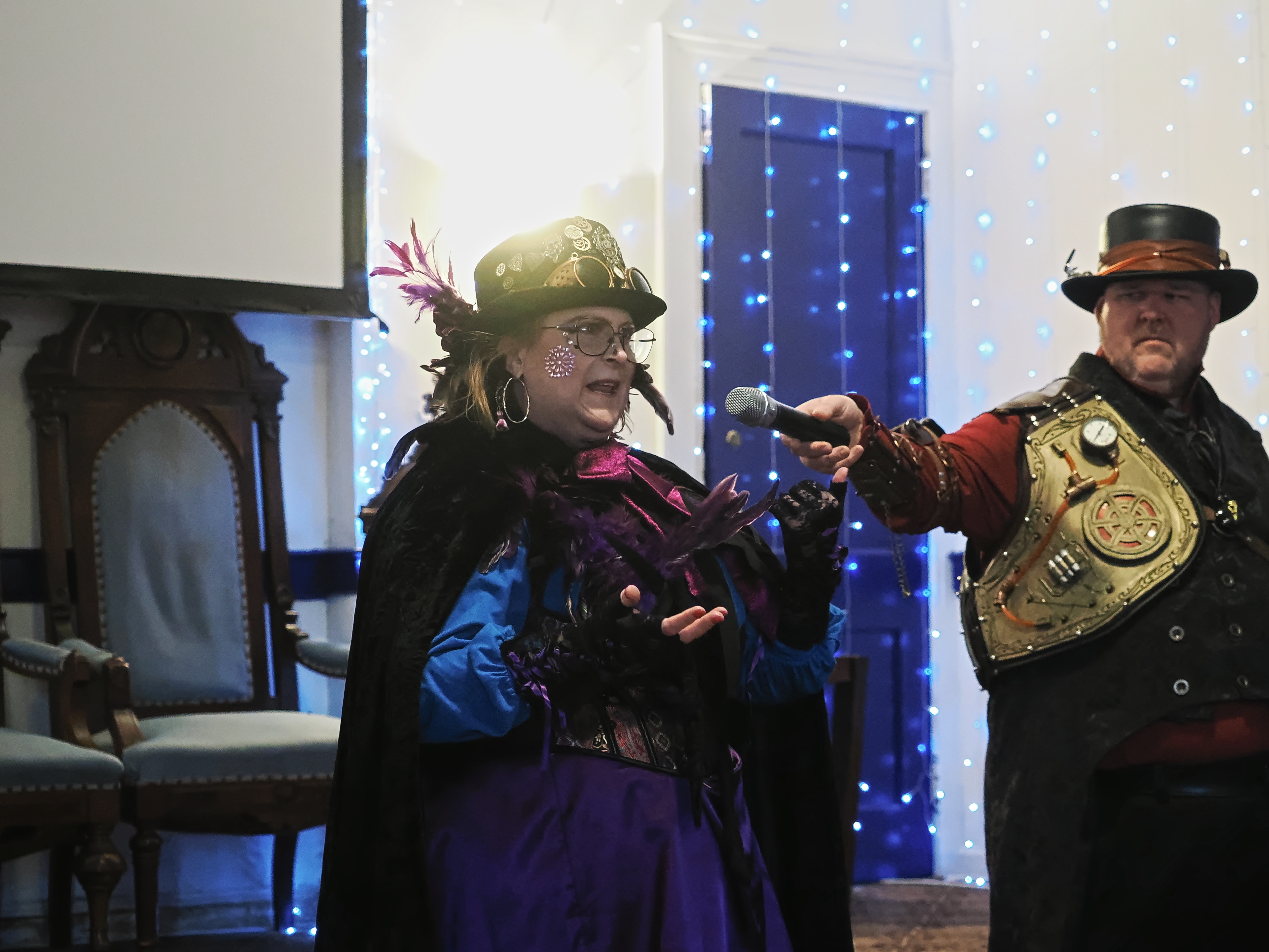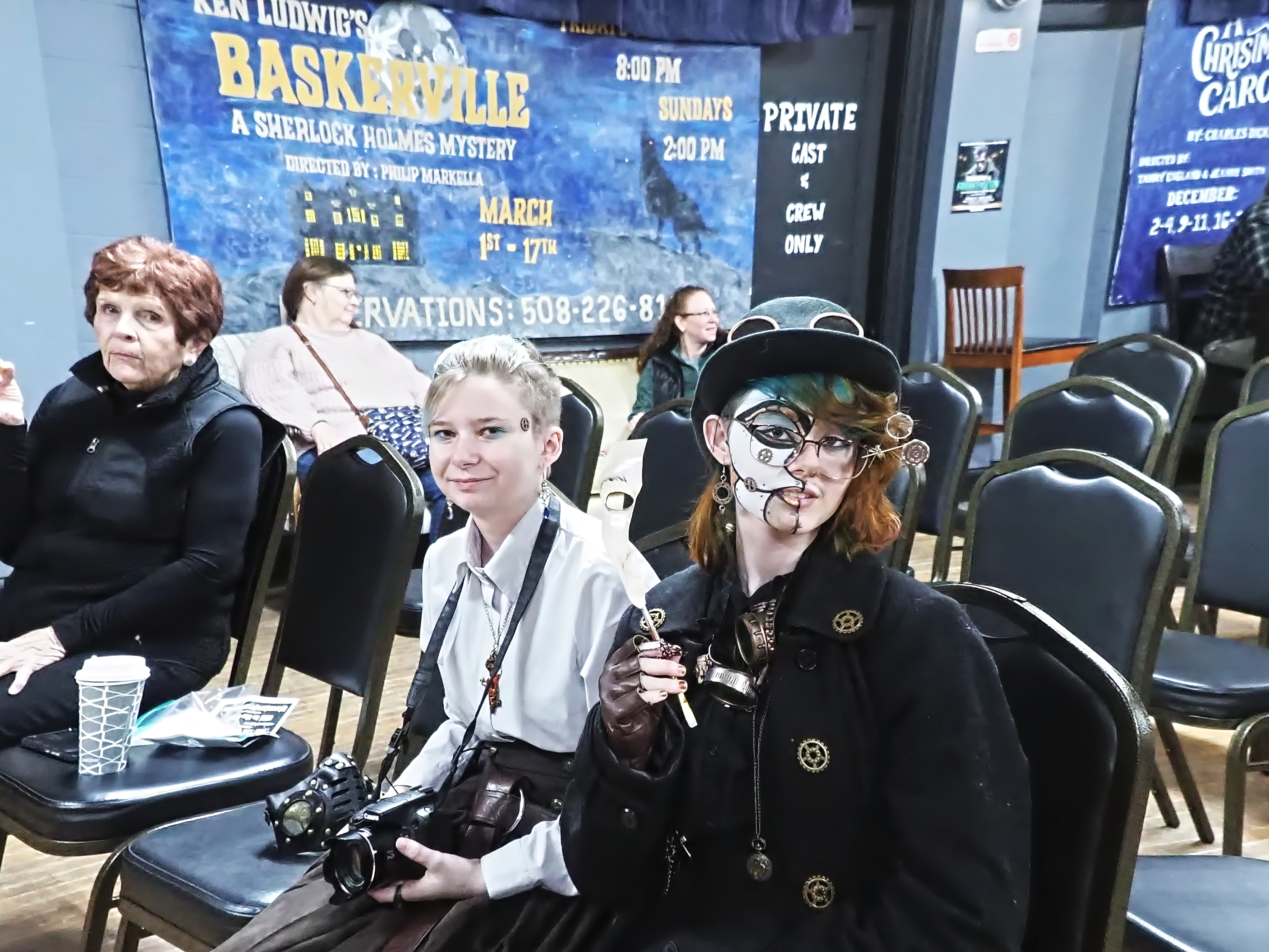 Picture #67: Steampunk Powerpoint Karaoke audience Small: 960x743, 157,274 bytes (154K), (html file) Large: 4800x3600, 3,199,237 bytes (3.1M), (html file) Copyright, Michael Meissner 2025, All rights reserved OM OM1 camera with Olympus-m43 12-40mm f/2.8 lens f/2.8, ISO 2500, 1/60 sec, 12.0mm, auto mode, vivid color, matrix metering, continous focus, IS Auto, face detection, anti-shock 35mm equivalent focal length 24.0mm Programs used: crop, raw therapee Taken by Michael Meissner on January 25, 2025 15:10:35 Last modified on February 01, 2025 at 20:02 |