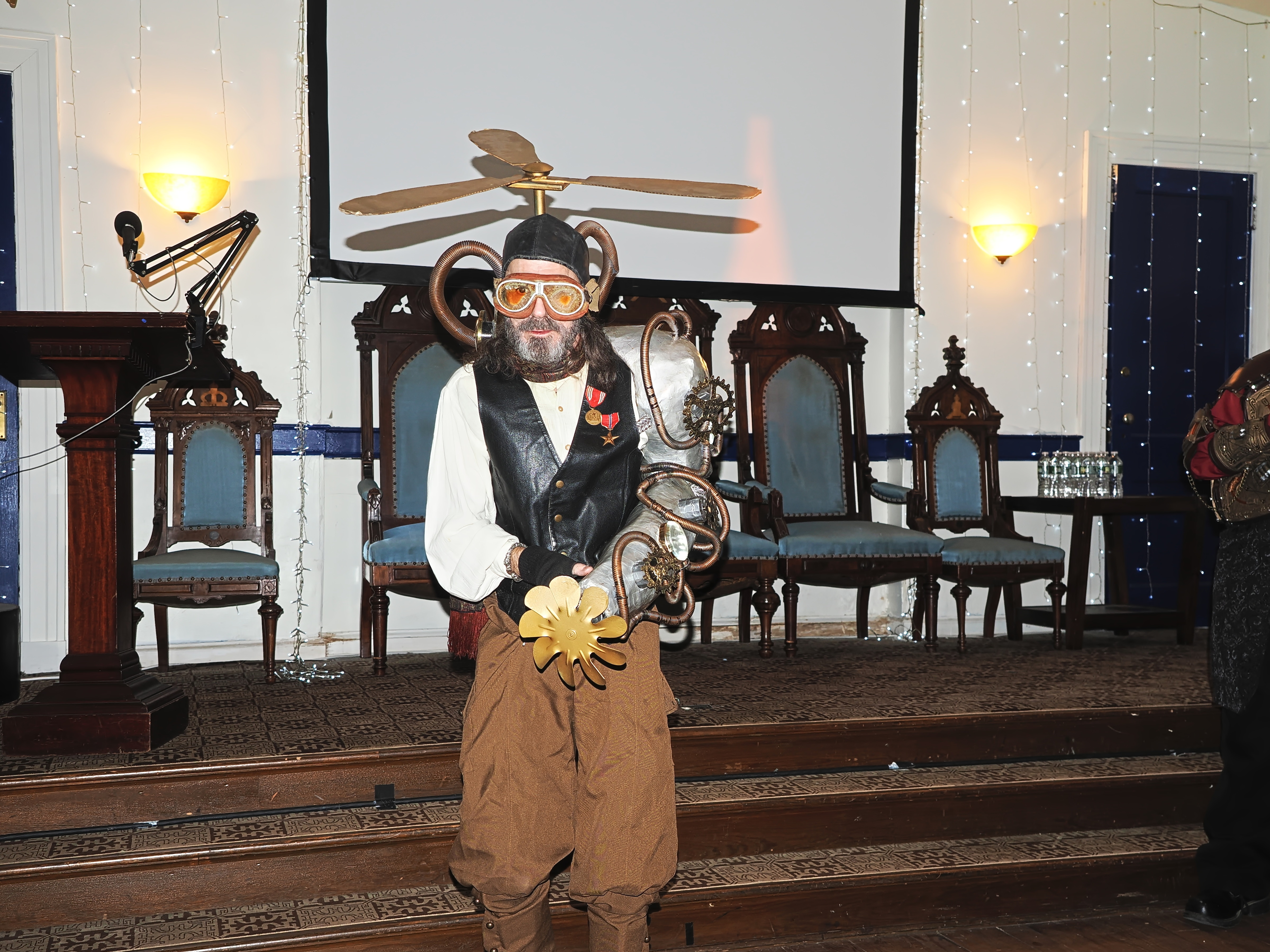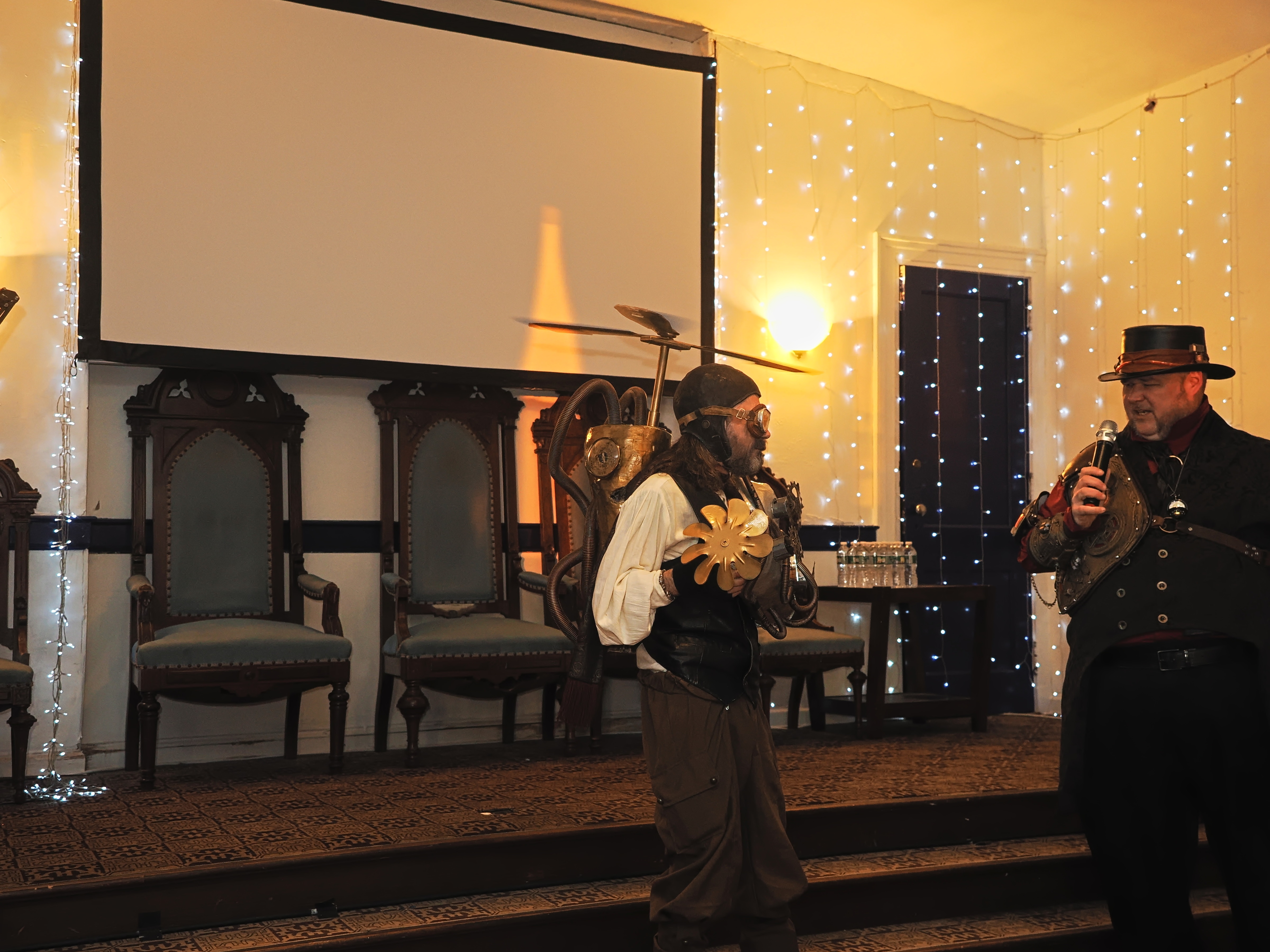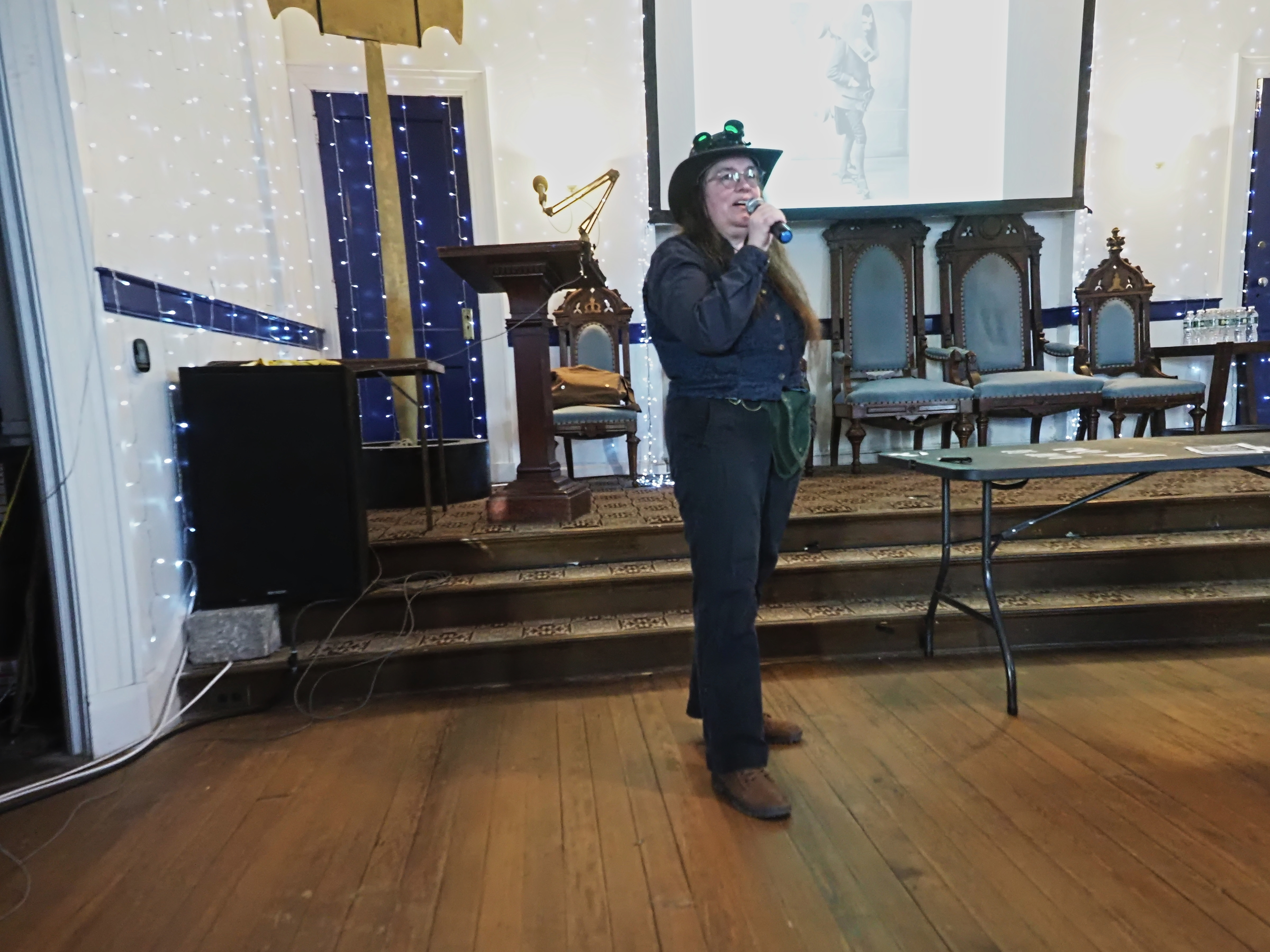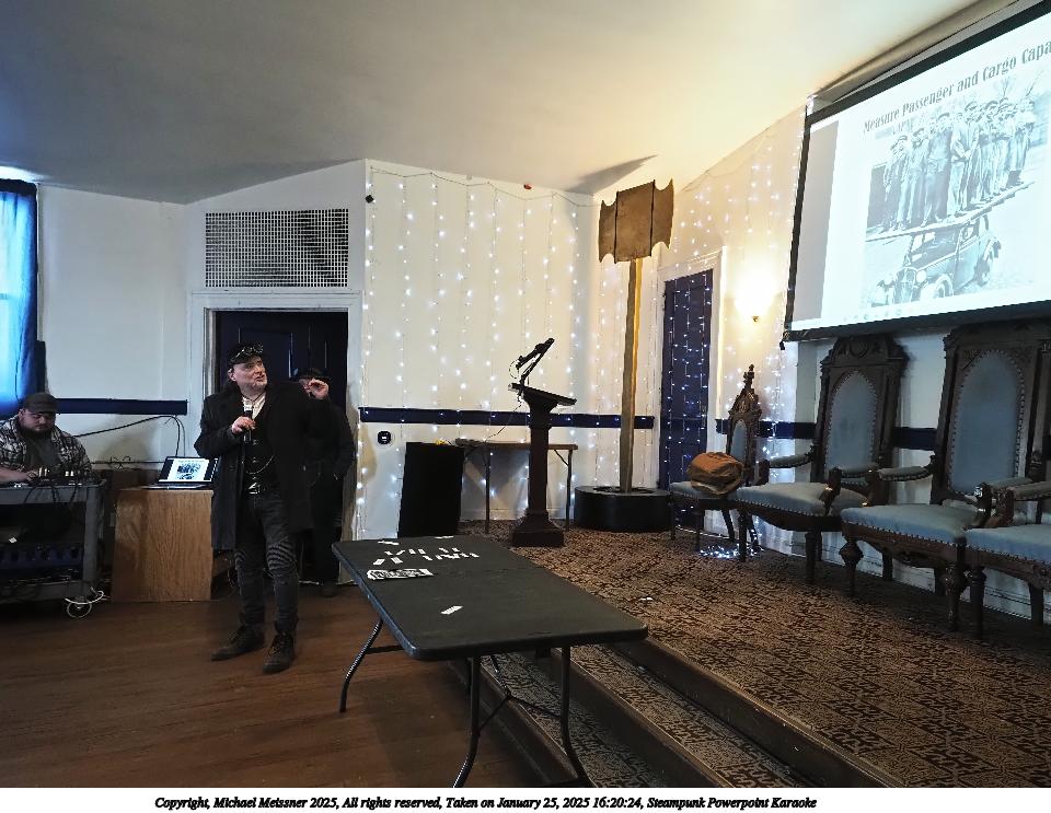 Picture #73: Steampunk Powerpoint Karaoke #4 Small: 960x743, 126,897 bytes (124K), (html file) Large: 4800x3600, 2,500,913 bytes (2.4M), (html file) Copyright, Michael Meissner 2025, All rights reserved Olympus E-M1-II camera with Olympus-m43 12-40mm f/2.8 lens f/2.8, ISO 2500, 1/60 sec, 12.0mm, auto mode, natural color, SHQ, matrix metering, digital zoom x2, IS Auto, both eyes priority, face detection, anti-shock 35mm equivalent focal length 48.0mm, digital zoom x2 Programs used: crop, raw therapee Taken by Michael Meissner on January 25, 2025 16:31:01 Last modified on February 01, 2025 at 20:07 |