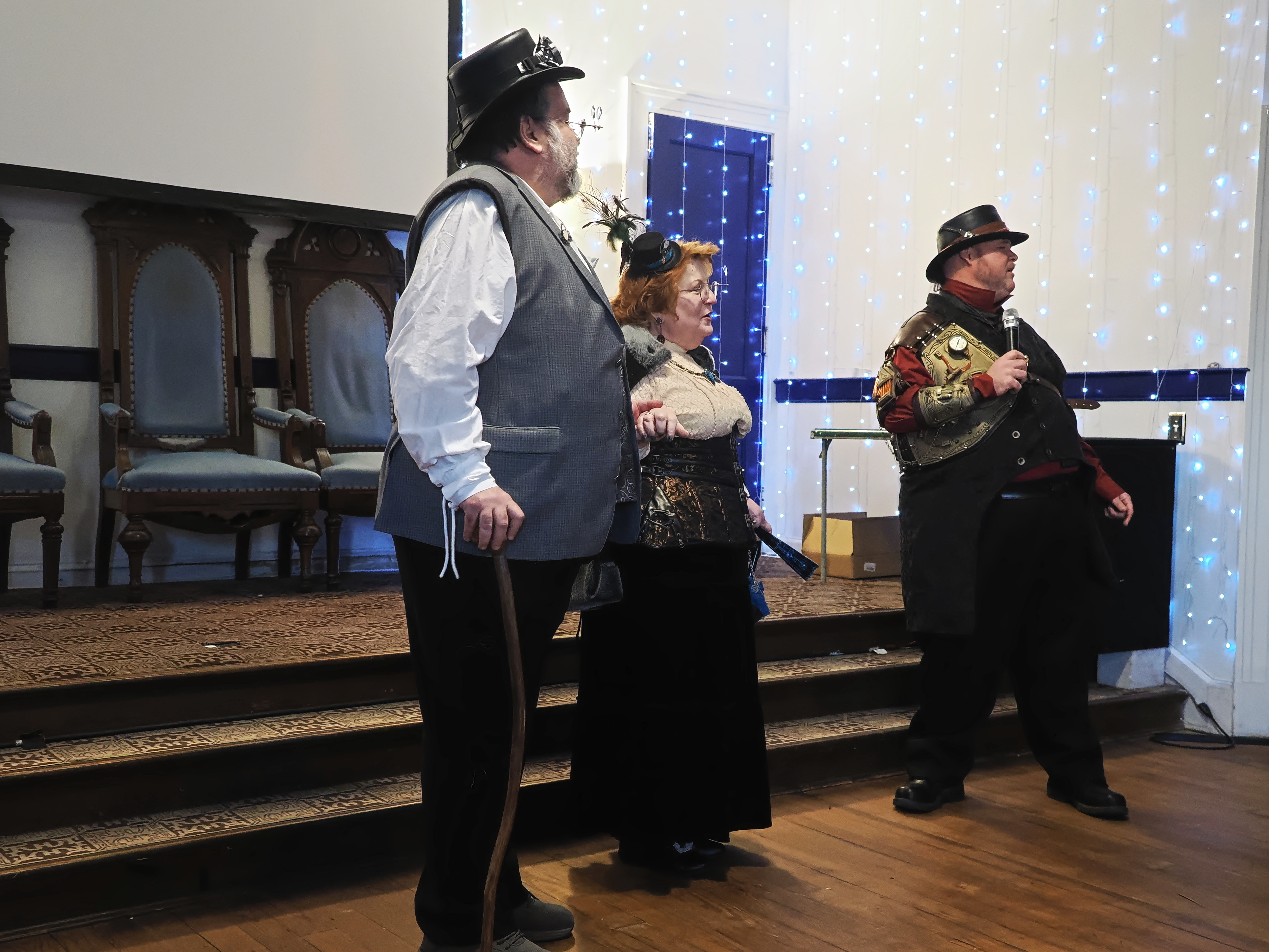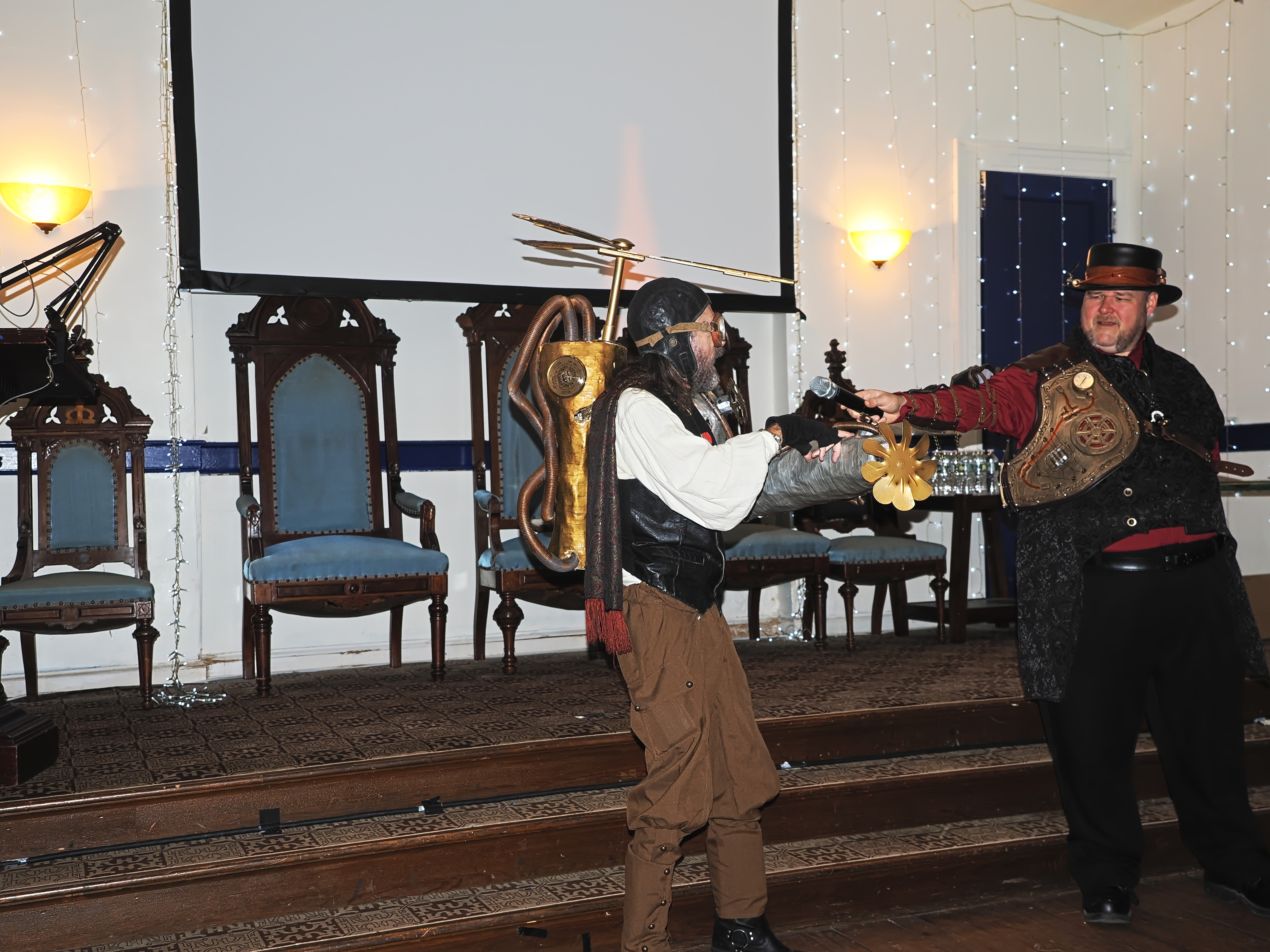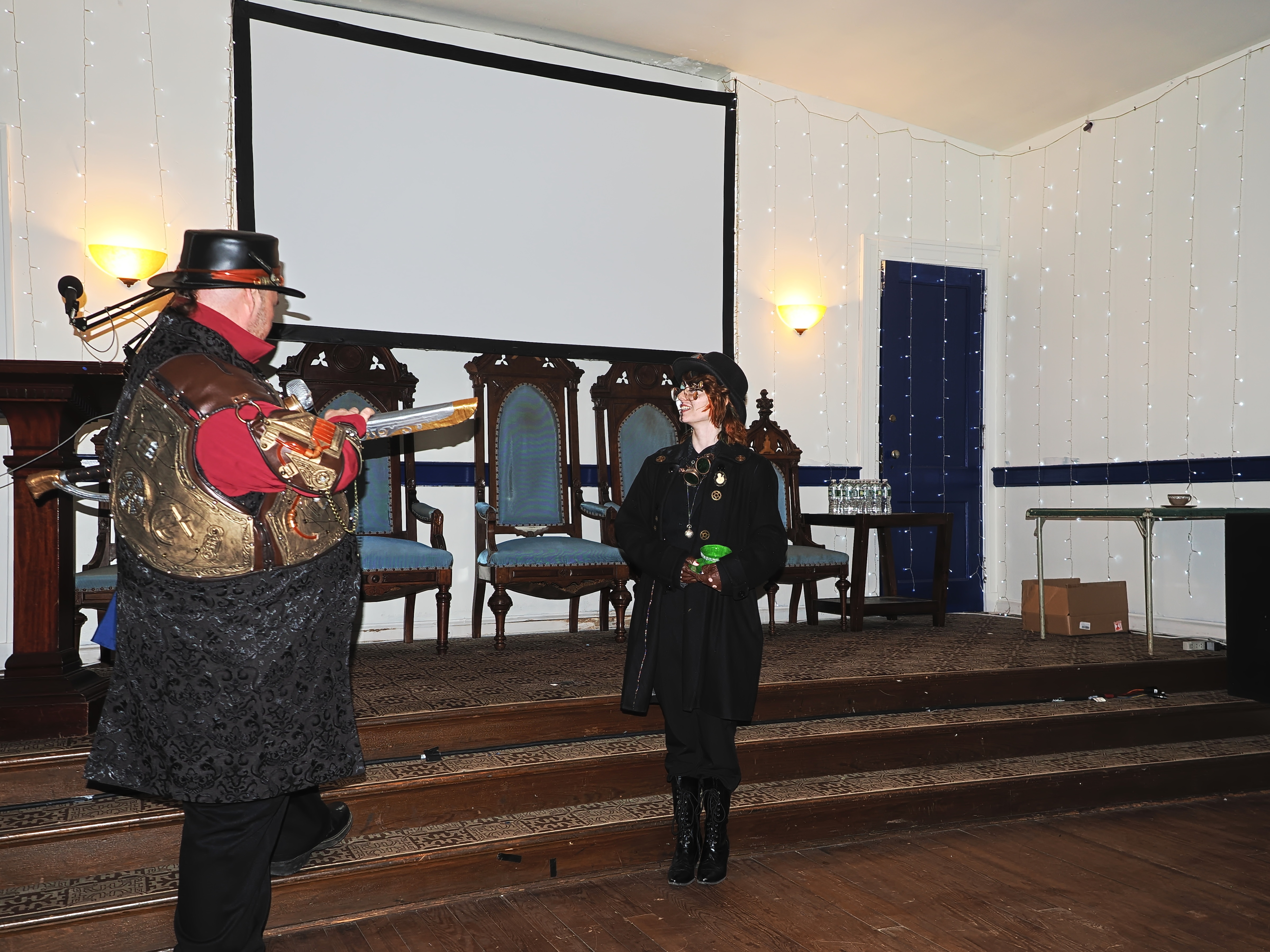 Picture #73: Steampunk Powerpoint Karaoke #4 Small: 960x743, 126,897 bytes (124K), (html file) Large: 4800x3600, 2,500,913 bytes (2.4M), (html file) Copyright, Michael Meissner 2025, All rights reserved Olympus E-M1-II camera with Olympus-m43 12-40mm f/2.8 lens f/2.8, ISO 2500, 1/60 sec, 12.0mm, auto mode, natural color, SHQ, matrix metering, digital zoom x2, IS Auto, both eyes priority, face detection, anti-shock 35mm equivalent focal length 48.0mm, digital zoom x2 Programs used: crop, raw therapee Taken by Michael Meissner on January 25, 2025 16:31:01 Last modified on February 01, 2025 at 20:07 |