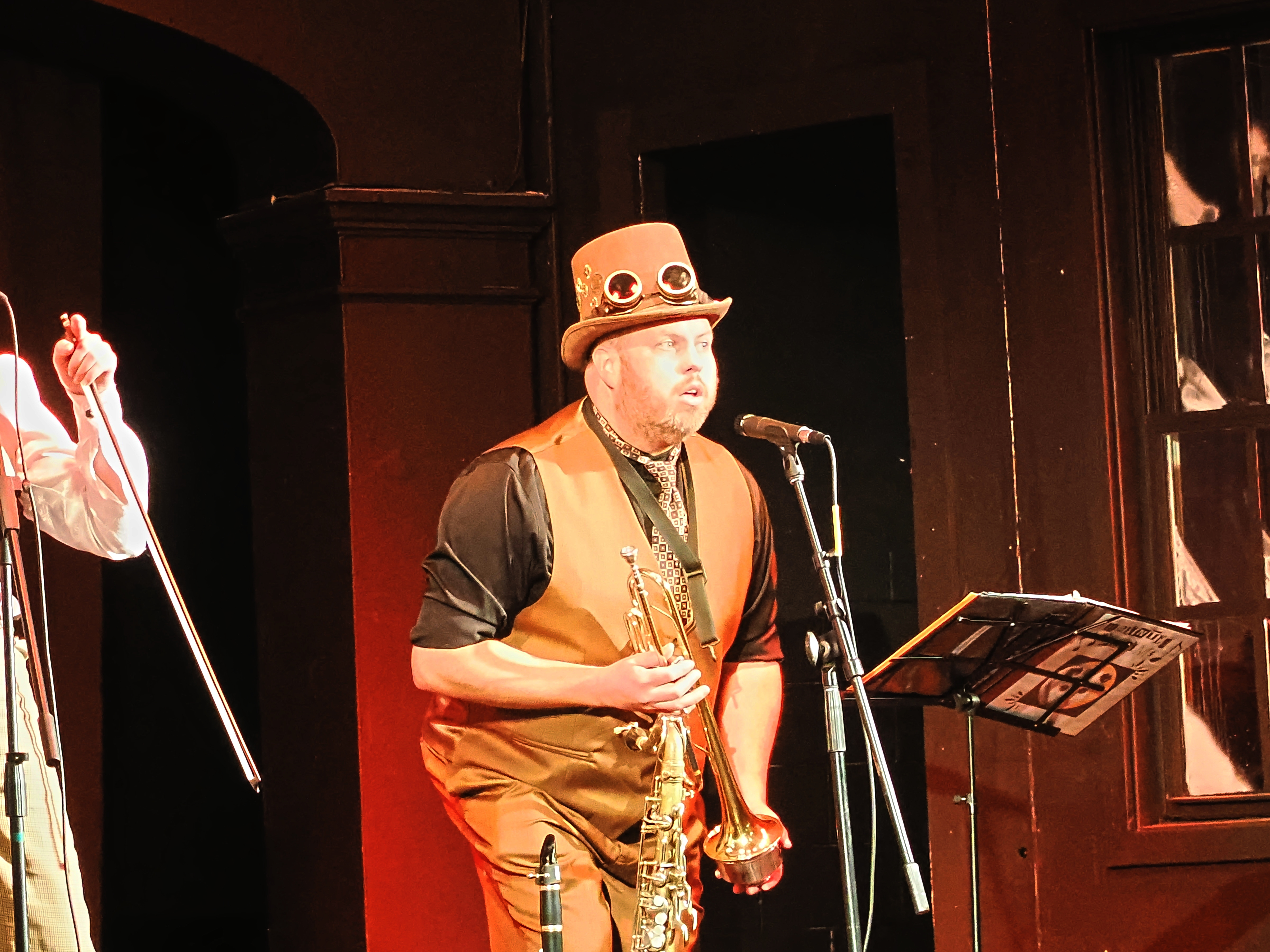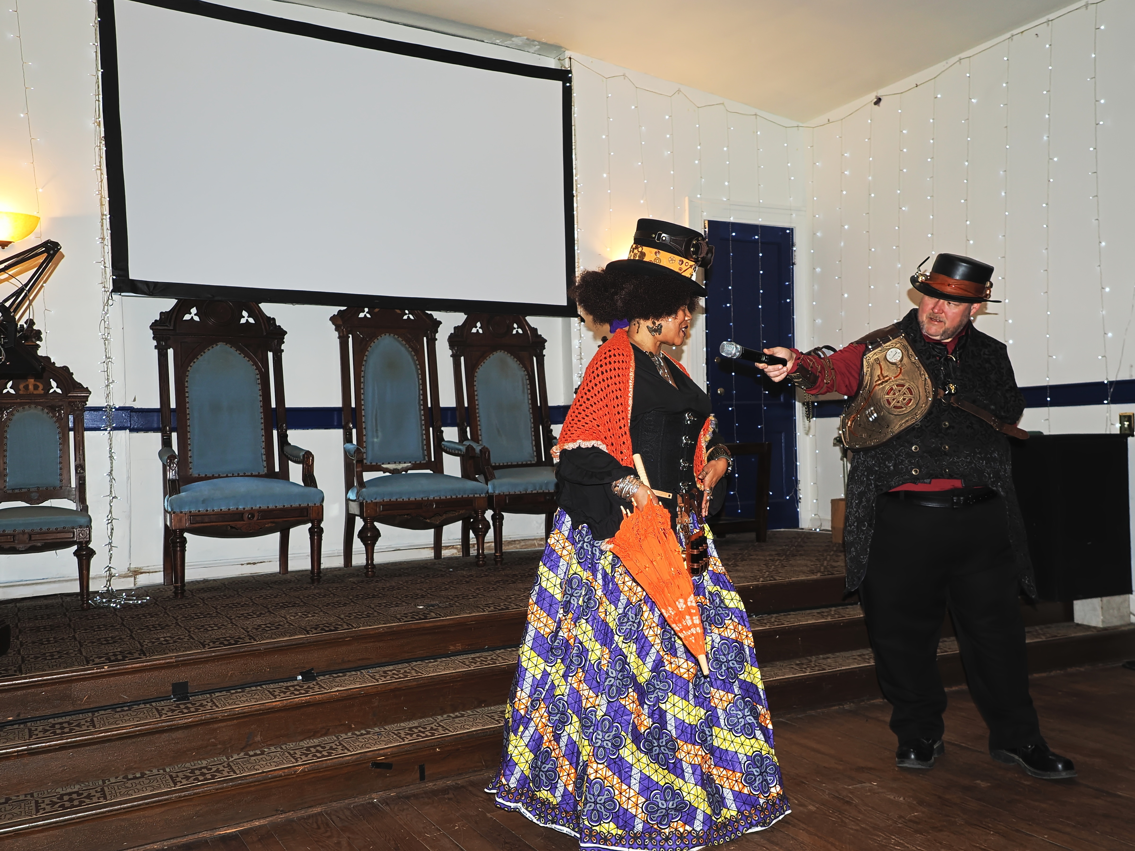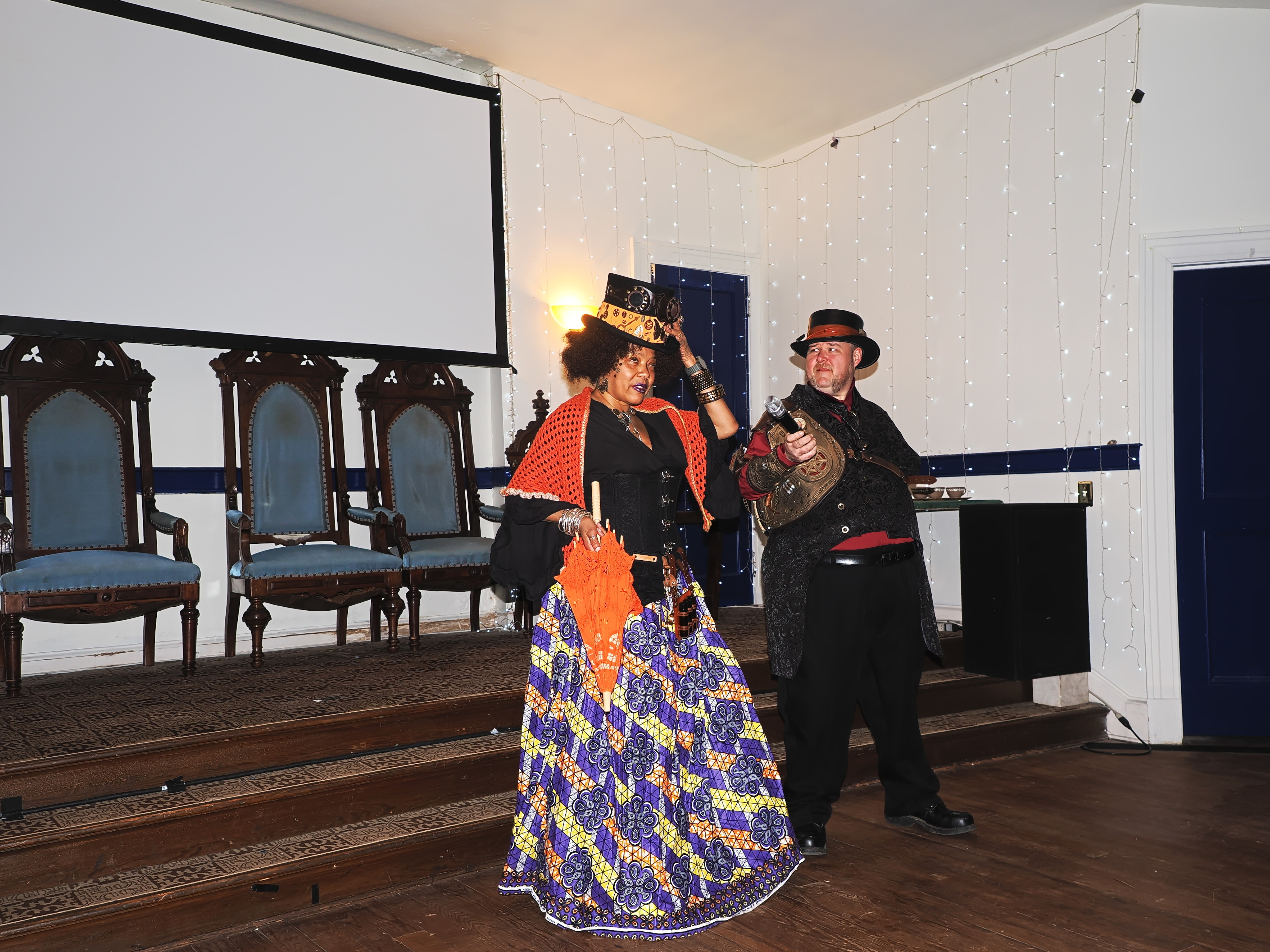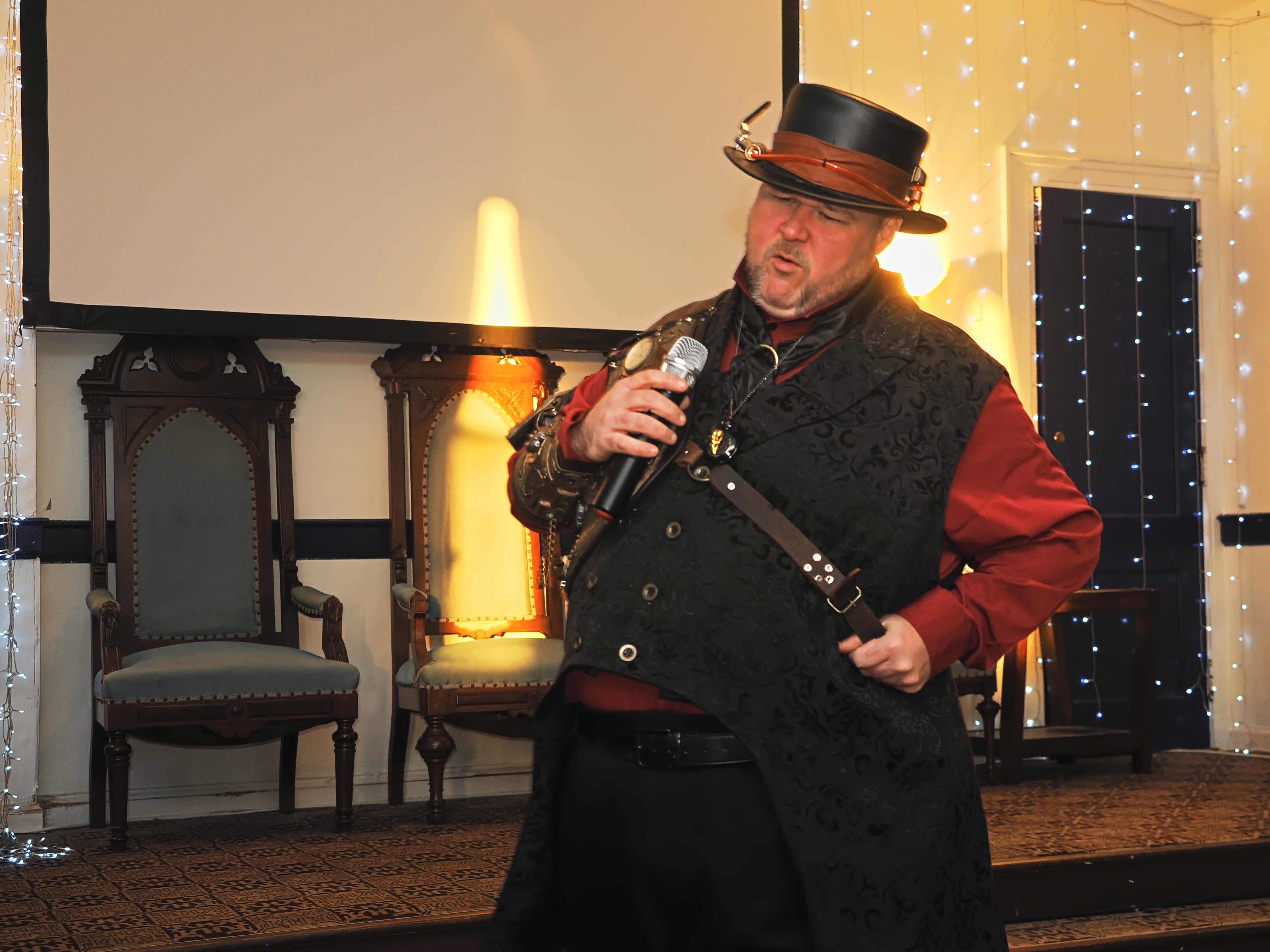 Picture #73: Steampunk Powerpoint Karaoke #4 Small: 960x743, 126,897 bytes (124K), (html file) Large: 4800x3600, 2,500,913 bytes (2.4M), (html file) Copyright, Michael Meissner 2025, All rights reserved Olympus E-M1-II camera with Olympus-m43 12-40mm f/2.8 lens f/2.8, ISO 2500, 1/60 sec, 12.0mm, auto mode, natural color, SHQ, matrix metering, digital zoom x2, IS Auto, both eyes priority, face detection, anti-shock 35mm equivalent focal length 48.0mm, digital zoom x2 Programs used: crop, raw therapee Taken by Michael Meissner on January 25, 2025 16:31:01 Last modified on February 01, 2025 at 20:07 |