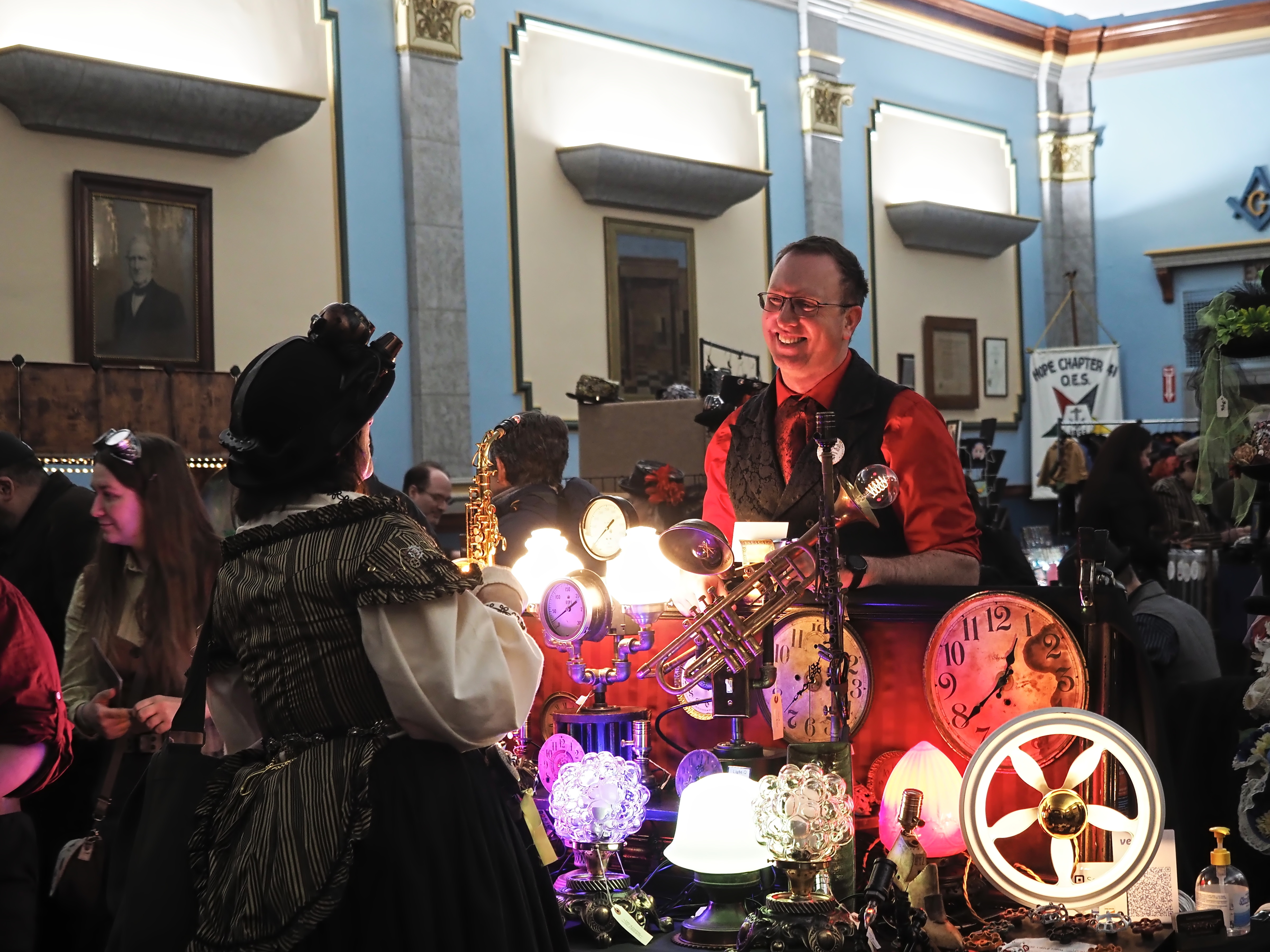 Picture #23: Steampunks #3 Small: 960x743, 119,262 bytes (117K), (html file) Large: 4800x3600, 2,526,913 bytes (2.4M), (html file) Copyright, Michael Meissner 2025, All rights reserved Olympus E-M1-II camera with Olympus-m43 12-40mm f/2.8 lens f/2.8, ISO 2000, 1/60 sec, 27.0mm, auto mode, natural color, SHQ, matrix metering, continous focus, IS Auto, both eyes priority, face detection, anti-shock 35mm equivalent focal length 54.0mm Programs used: crop, raw therapee Taken by Michael Meissner on January 25, 2025 13:28:25 Last modified on February 01, 2025 at 18:59 |