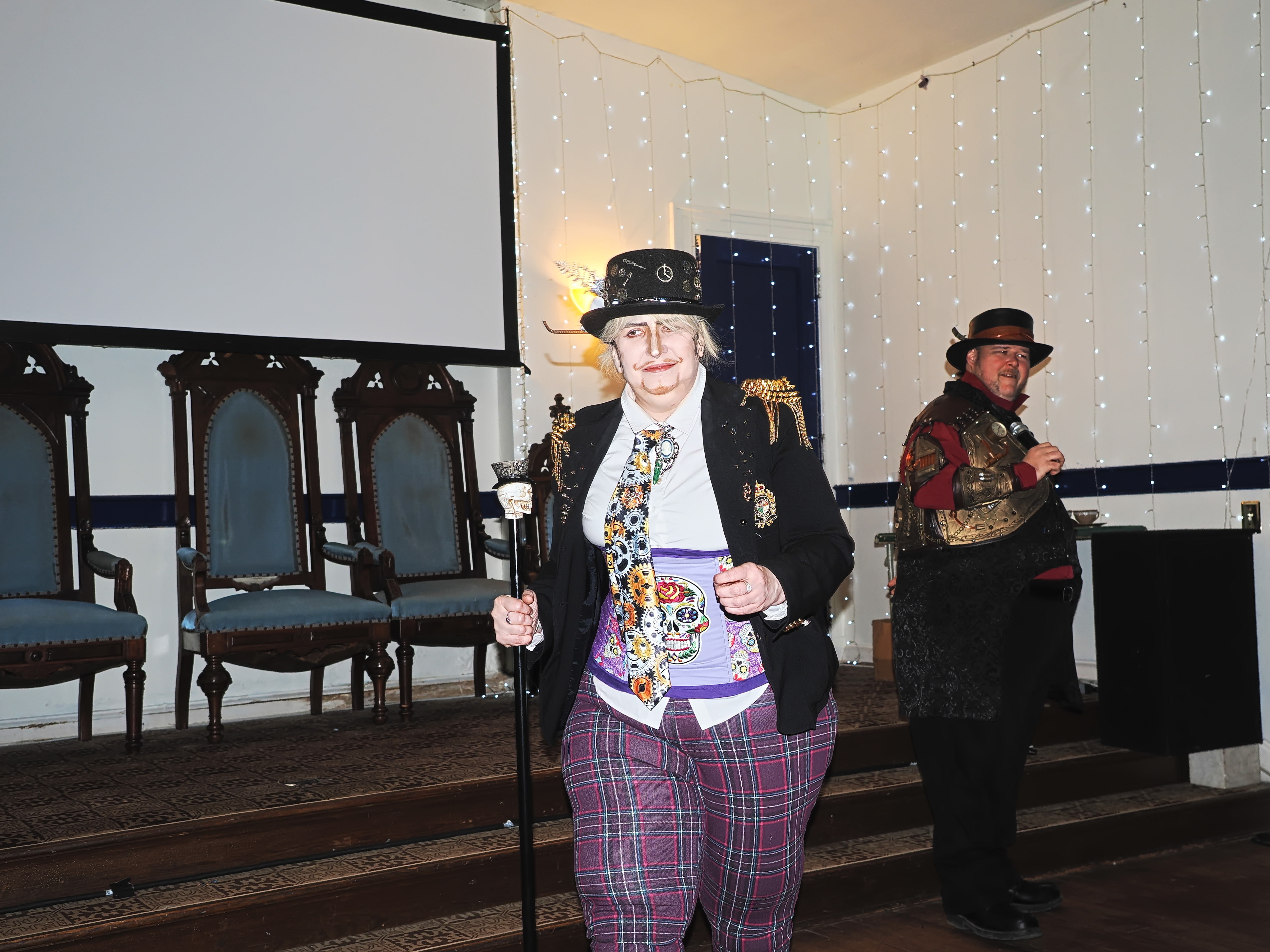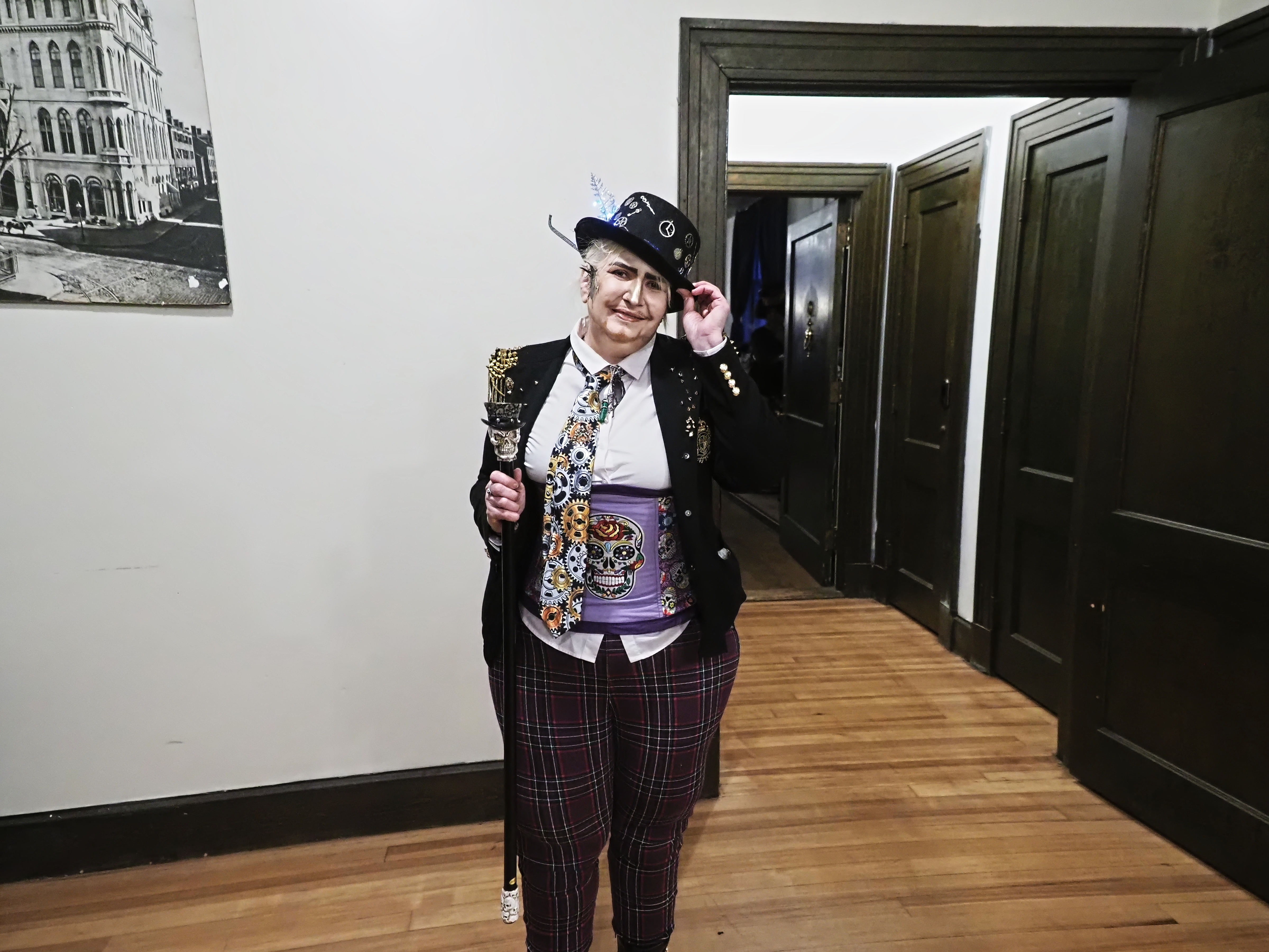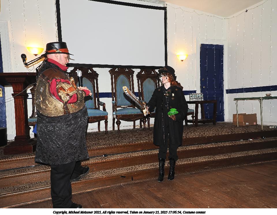 Picture #94: Costume contest #17 Small: 960x743, 161,087 bytes (158K), (html file) Large: 4800x3600, 3,186,744 bytes (3.0M), (html file) Copyright, Michael Meissner 2025, All rights reserved OM OM1 camera with Olympus-m43 12-40mm f/2.8 lens f/2.8, ISO 200, flash, 1/60 sec, 15.0mm, auto mode, vivid color, matrix metering, continous focus, IS Auto, face detection, anti-shock 35mm equivalent focal length 30.0mm Programs used: crop, raw therapee Taken by Michael Meissner on January 25, 2025 16:57:01 Last modified on February 01, 2025 at 20:18 |