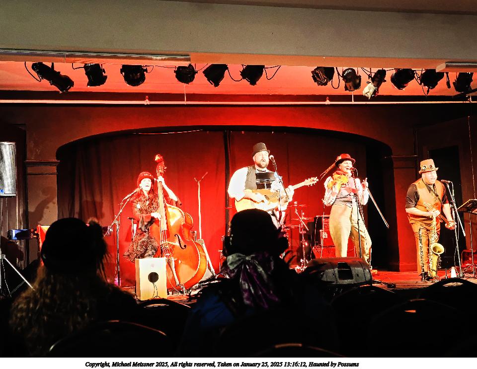 Picture #55: Haunted by Possums #6 Small: 960x743, 142,343 bytes (140K), (html file) Large: 4800x3600, 7,727,932 bytes (7.4M), (html file) Copyright, Michael Meissner 2025, All rights reserved Olympus E-M1-II camera with Olympus-m43 12-40mm f/2.8 lens f/2.8, ISO 4000, 1/60 sec, 12.0mm, auto mode, natural color, SHQ, matrix metering, digital zoom x2, continous focus, IS Auto, both eyes priority, face detection, anti-shock 35mm equivalent focal length 48.0mm, digital zoom x2 Programs used: crop, gimp, raw therapee Taken by Michael Meissner on January 25, 2025 14:11:18 Last modified on February 01, 2025 at 19:52 |