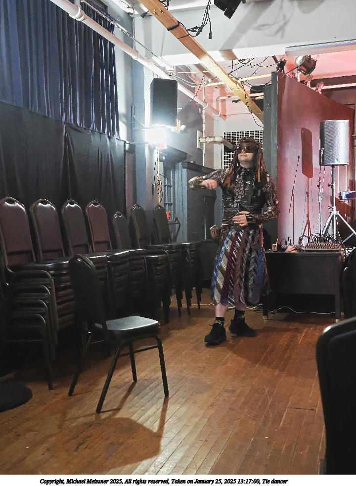 Picture #20: Tie dancer Small: 720x983, 138,614 bytes (136K), (html file) Large: 3600x4800, 2,649,958 bytes (2.5M), (html file) Copyright, Michael Meissner 2025, All rights reserved OM OM1 camera with Olympus-m43 12-40mm f/2.8 lens f/2.8, ISO 10000, 1/60 sec, 19.0mm, auto mode, vivid color, matrix metering, continous focus, IS Auto, anti-shock 35mm equivalent focal length 38.0mm Programs used: crop, raw therapee, rotate left Taken by Michael Meissner on January 25, 2025 13:17:00 Last modified on February 01, 2025 at 18:59 |
