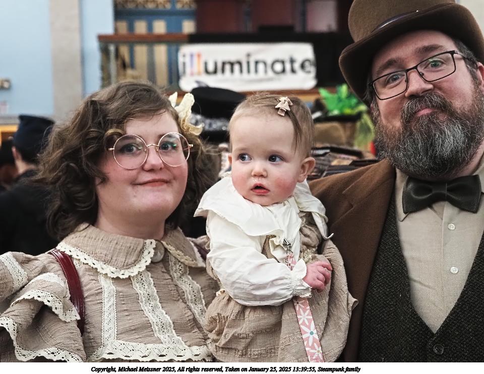 Picture #31: Steampunk family Small: 960x743, 149,134 bytes (146K), (html file) Large: 4800x3600, 3,159,140 bytes (3.0M), (html file) Copyright, Michael Meissner 2025, All rights reserved Olympus E-M1-II camera with Olympus-m43 12-40mm f/2.8 lens f/2.8, ISO 2000, 1/60 sec, 27.0mm, auto mode, natural color, SHQ, matrix metering, continous focus, IS Auto, both eyes priority, face detection, anti-shock 35mm equivalent focal length 54.0mm Programs used: crop, raw therapee Taken by Michael Meissner on January 25, 2025 13:39:55 Last modified on February 01, 2025 at 19:02 |