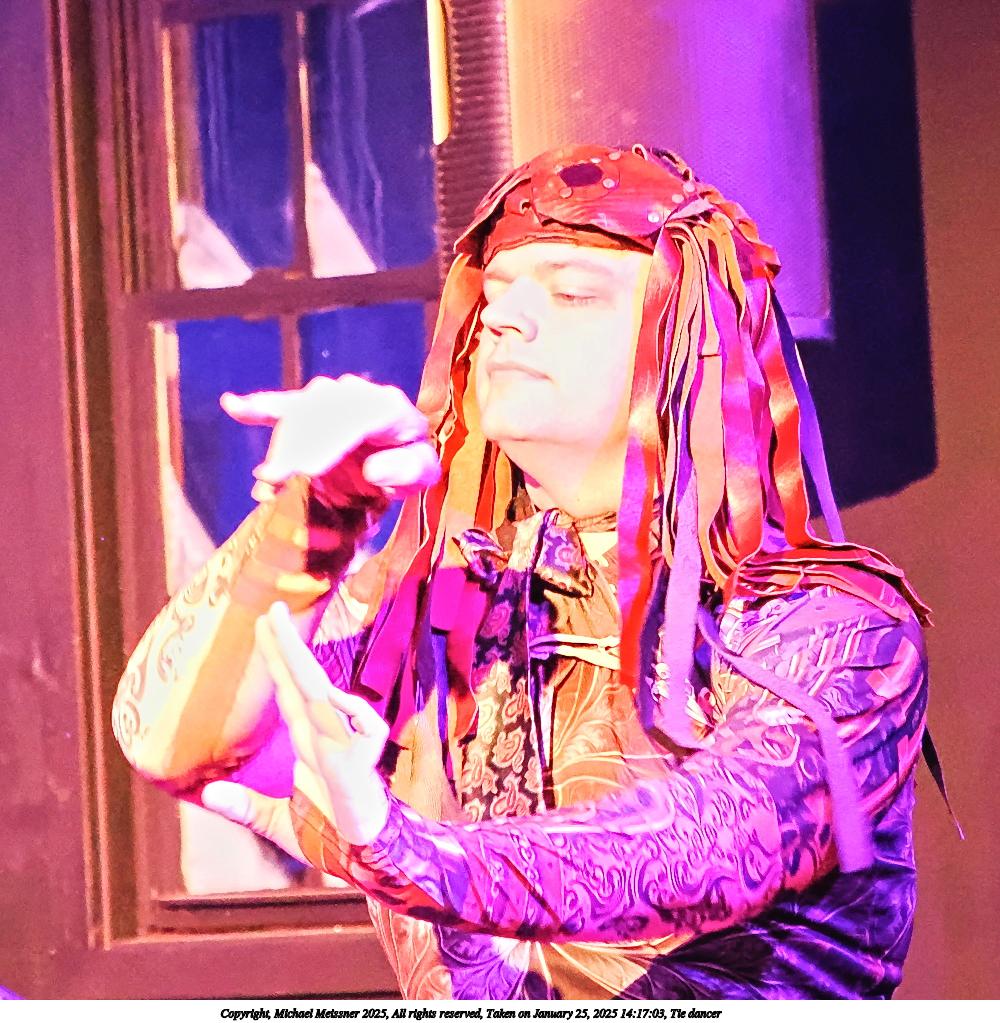 Picture #21: Tie dancer #2 Small: 720x983, 137,379 bytes (135K), (html file) Large: 3600x4800, 2,644,010 bytes (2.5M), (html file) Copyright, Michael Meissner 2025, All rights reserved OM OM1 camera with Olympus-m43 12-40mm f/2.8 lens f/2.8, ISO 10000, 1/60 sec, 19.0mm, auto mode, vivid color, matrix metering, continous focus, IS Auto, anti-shock 35mm equivalent focal length 38.0mm Programs used: crop, raw therapee, rotate left Taken by Michael Meissner on January 25, 2025 13:17:00 Last modified on February 01, 2025 at 18:59 |