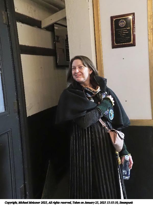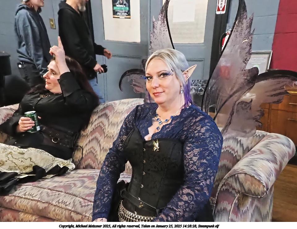 Picture #64: Steampunk elf #2 Small: 960x743, 148,980 bytes (146K), (html file) Large: 4800x3600, 2,441,723 bytes (2.3M), (html file) Copyright, Michael Meissner 2025, All rights reserved Olympus E-M1-II camera with Olympus-m43 12-40mm f/2.8 lens f/2.8, ISO 3200, 1/60 sec, 12.0mm, auto mode, natural color, SHQ, matrix metering, digital zoom x2, continous focus, IS Auto, both eyes priority, face detection, anti-shock 35mm equivalent focal length 48.0mm, digital zoom x2 Programs used: crop, raw therapee Taken by Michael Meissner on January 25, 2025 14:28:28 Last modified on February 01, 2025 at 20:00 |