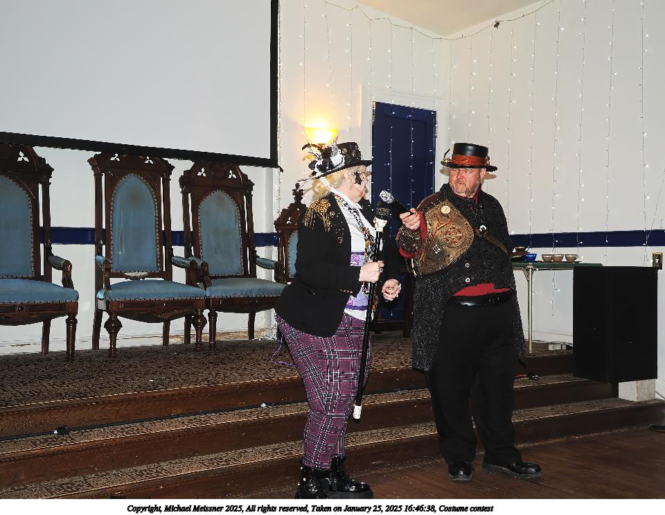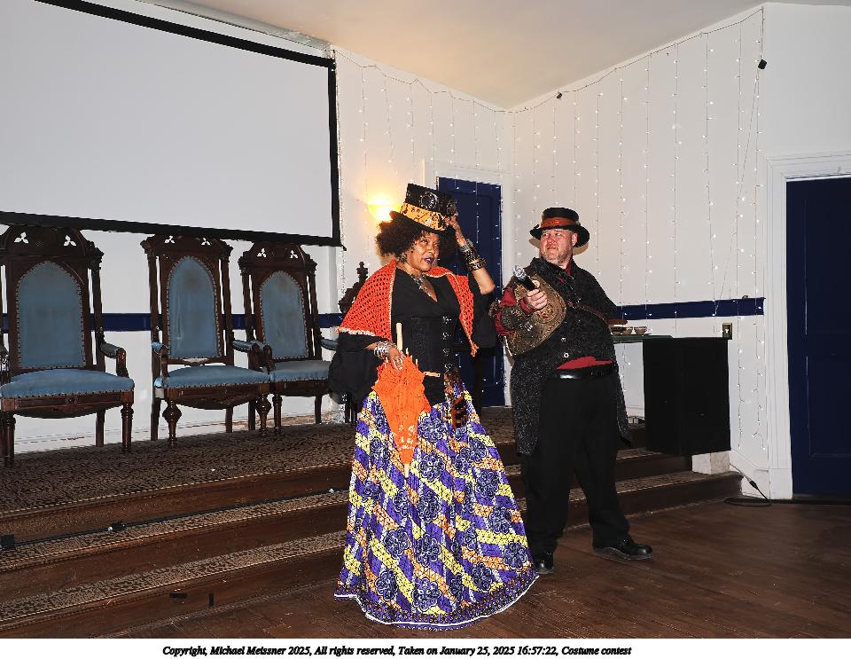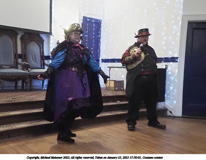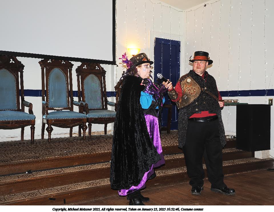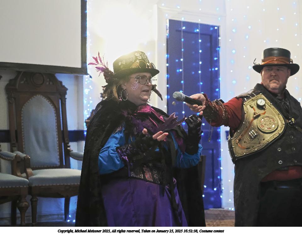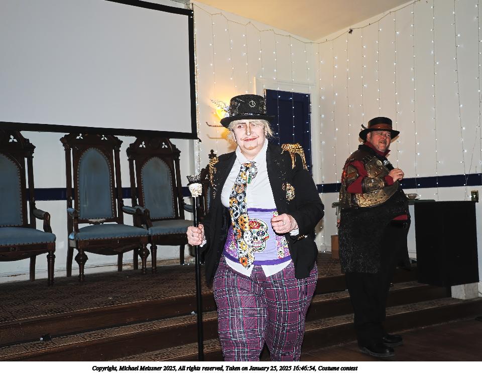 Picture #99: Costume contest #22 Small: 800x623, 85,270 bytes (84K), (html file) Large: 3200x2400, 2,718,332 bytes (2.6M), (html file) Copyright, Michael Meissner 2025, All rights reserved Olympus E-M1-II camera with Olympus-m43 12-40mm f/2.8 lens f/3.2, ISO 6400, 1/60 sec, 12.0mm, auto mode, natural color, SHQ, matrix metering, IS Auto, both eyes priority, face detection, anti-shock 35mm equivalent focal length 24.0mm Programs used: crop, gimp, raw therapee Taken by Michael Meissner on January 25, 2025 17:50:01 Last modified on February 01, 2025 at 20:21 |