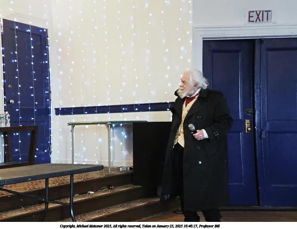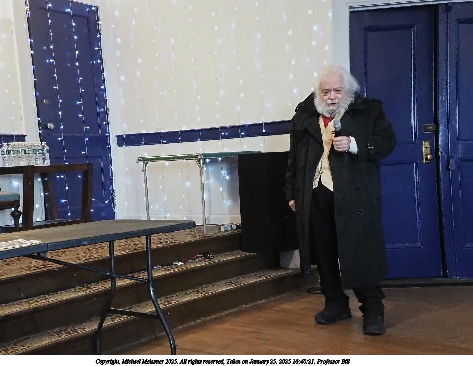 Picture #84: Professor Bill #2 Small: 960x743, 109,833 bytes (108K), (html file) Large: 4800x3600, 2,145,161 bytes (2.0M), (html file) Copyright, Michael Meissner 2025, All rights reserved Olympus E-M1-II camera with Olympus-m43 12-40mm f/2.8 lens f/2.8, ISO 4000, 1/60 sec, 12.0mm, auto mode, natural color, SHQ, matrix metering, digital zoom x2, IS Auto, both eyes priority, face detection, anti-shock 35mm equivalent focal length 48.0mm, digital zoom x2 Programs used: crop, raw therapee Taken by Michael Meissner on January 25, 2025 16:46:21 Last modified on February 01, 2025 at 20:13 |