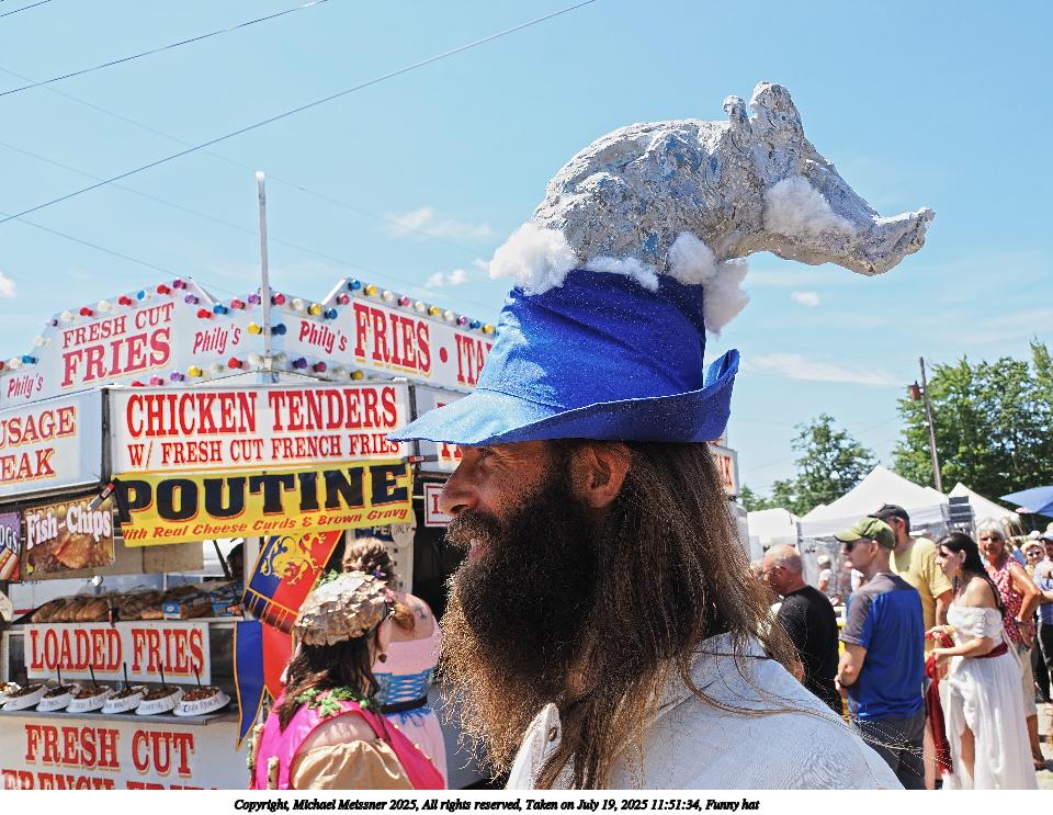 Picture #3: Funny hat Small: 960x743, 173,155 bytes (170K), (html file) Large: 4800x3600, 3,987,434 bytes (3.8M), (html file) Copyright, Michael Meissner 2025, All rights reserved OM OM3 camera with Olympus-m43 14-150mm-II f/4.0-5.6 lens f/8.0, ISO 200, 1/200 sec, 14.0mm, auto mode, vivid color, matrix metering, IS Auto, face detection, subject human 35mm equivalent focal length 28.0mm Programs used: crop, raw therapee Taken by Michael Meissner on July 19, 2025 11:51:34 Last modified on August 06, 2025 at 01:27 |
