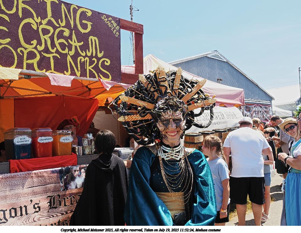 Picture #4: Medusa costume Small: 960x743, 197,935 bytes (194K), (html file) Large: 4800x3600, 4,484,906 bytes (4.3M), (html file) Copyright, Michael Meissner 2025, All rights reserved OM OM3 camera with Olympus-m43 14-150mm-II f/4.0-5.6 lens f/7.1, ISO 200, 1/200 sec, 14.0mm, auto mode, vivid color, matrix metering, IS Auto, face detection, subject human 35mm equivalent focal length 28.0mm Programs used: crop, raw therapee Taken by Michael Meissner on July 19, 2025 11:52:24 Last modified on August 06, 2025 at 01:29 |