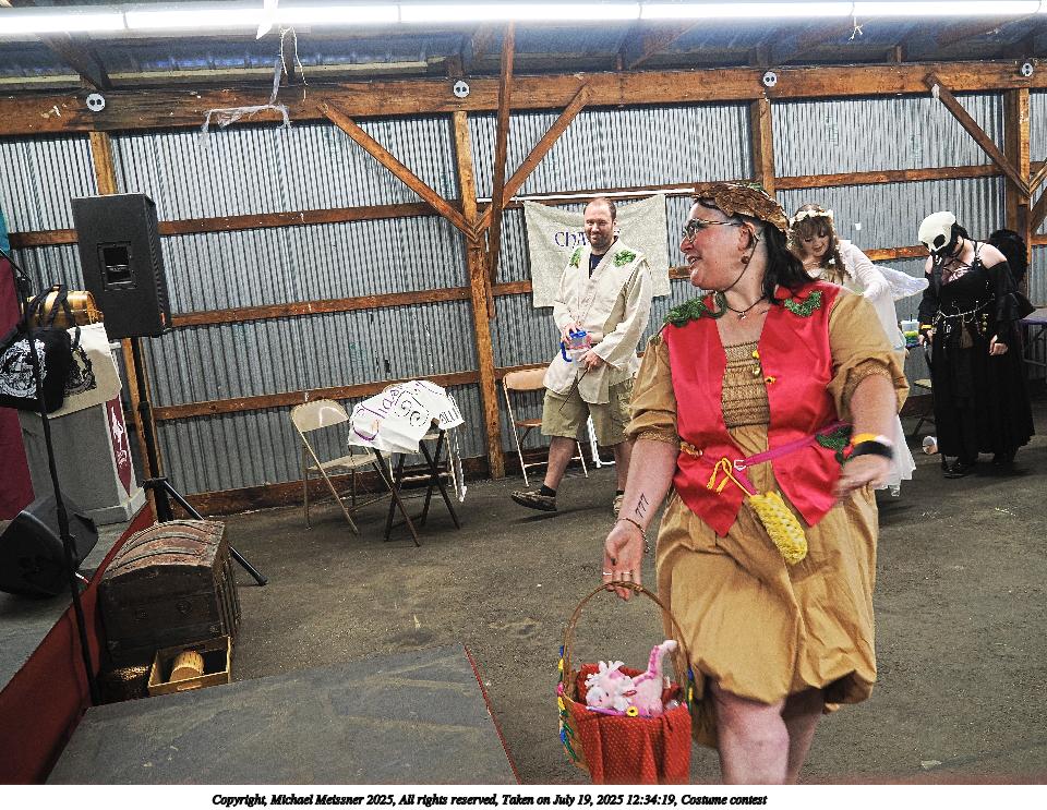 Picture #18: Costume contest #16 Small: 960x743, 197,285 bytes (193K), (html file) Large: 4800x3600, 5,735,038 bytes (5.5M), (html file) Copyright, Michael Meissner 2025, All rights reserved OM OM3 camera with Olympus-m43 14-150mm-II f/4.0-5.6 lens f/4.0, ISO 800, 1/60 sec, 14.0mm, auto mode, vivid color, matrix metering, IS Auto, face detection, subject human 35mm equivalent focal length 28.0mm Programs used: crop, raw therapee Taken by Michael Meissner on July 19, 2025 12:38:17 Last modified on August 06, 2025 at 23:00 |