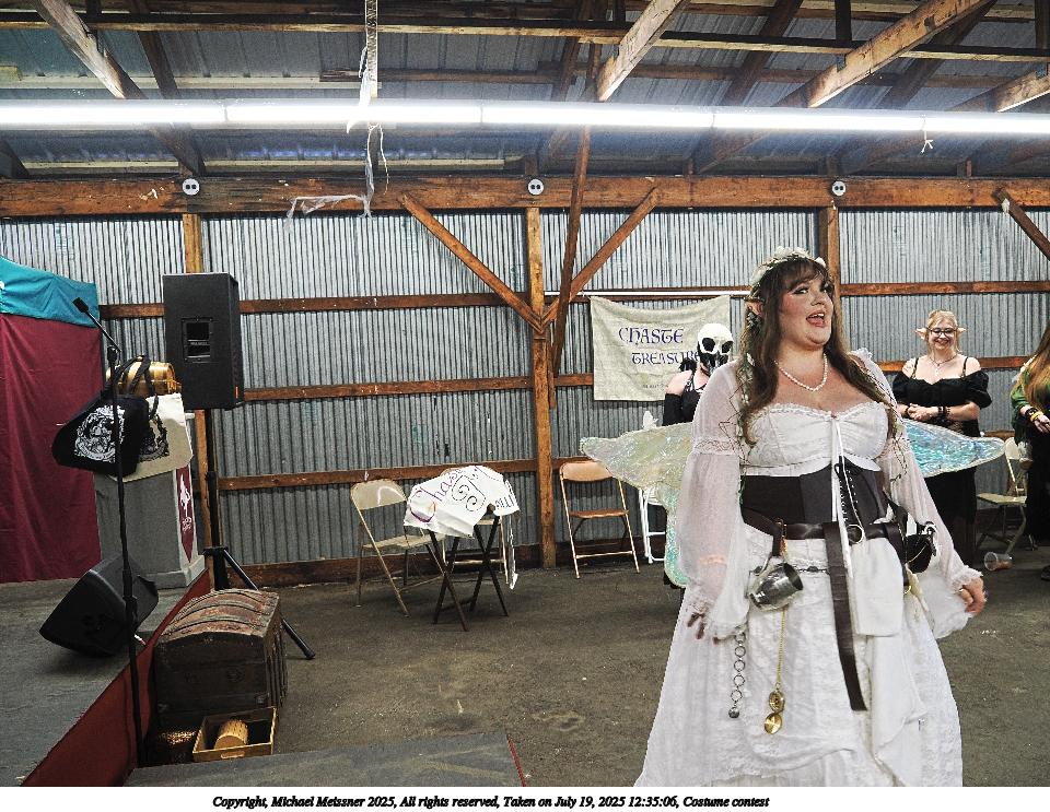 Picture #35: Costume contest #33 Small: 960x743, 191,389 bytes (187K), (html file) Large: 4800x3600, 5,026,438 bytes (4.8M), (html file) Copyright, Michael Meissner 2025, All rights reserved OM OM1 camera with Olympus-m43 12-40mm f/2.8 lens f/2.8, ISO 1600, 1/125 sec, 19.0mm, auto mode, vivid color, matrix metering, IS Auto, face detection, anti-shock 35mm equivalent focal length 38.0mm Programs used: crop, raw therapee Taken by Michael Meissner on July 26, 2025 12:33:49 Last modified on August 12, 2025 at 00:20 |