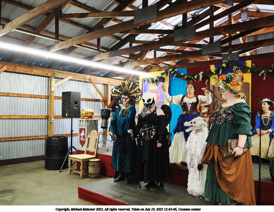 Picture #48: Costume contest #46 Small: 960x743, 205,953 bytes (202K), (html file) Large: 4800x3600, 5,530,130 bytes (5.3M), (html file) Copyright, Michael Meissner 2025, All rights reserved OM OM1 camera with Olympus-m43 12-40mm f/2.8 lens f/2.8, ISO 1250, 1/125 sec, 19.0mm, auto mode, vivid color, matrix metering, IS Auto, face detection, anti-shock 35mm equivalent focal length 38.0mm Programs used: crop, raw therapee Taken by Michael Meissner on July 26, 2025 12:39:07 Last modified on August 12, 2025 at 00:24 |