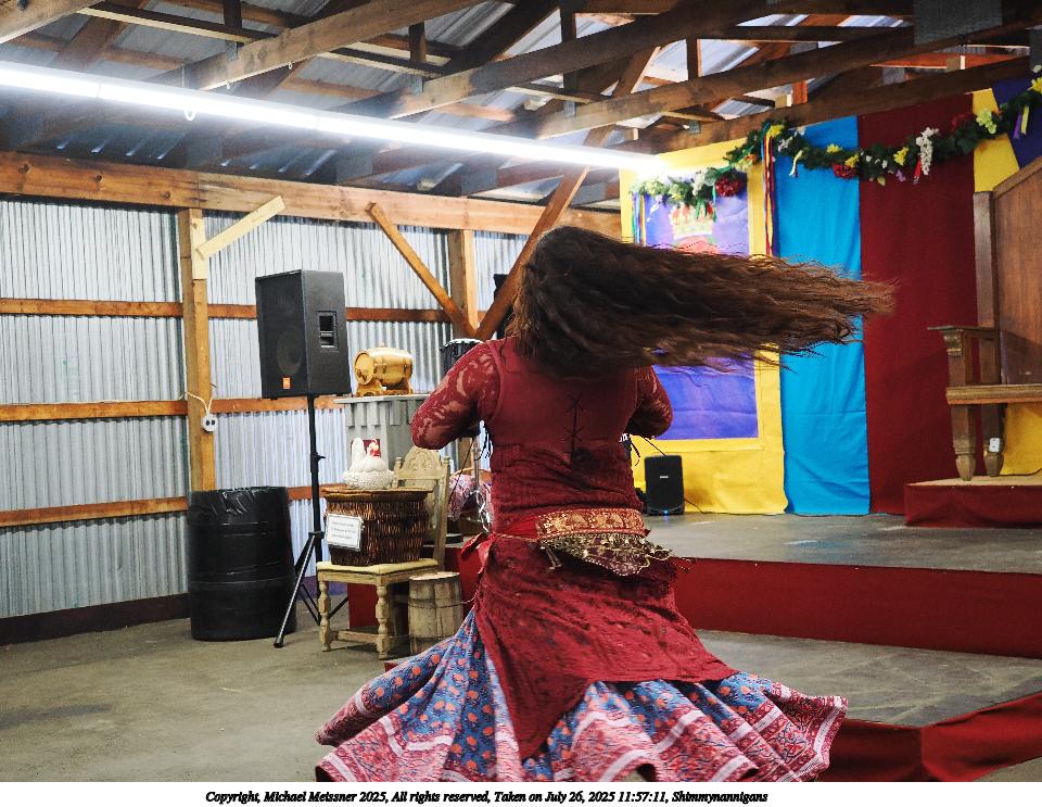 Picture #10: Shimmynannigans #10 Small: 600x823, 106,441 bytes (104K), (html file) Large: 1800x2400, 3,057,932 bytes (2.9M), (html file) Copyright, Michael Meissner 2025, All rights reserved OM OM1 camera with Olympus-m43 12-40mm f/2.8 lens f/2.8, ISO 1600, 1/125 sec, 31.0mm, auto mode, vivid color, matrix metering, IS Auto, face detection, anti-shock 35mm equivalent focal length 62.0mm Programs used: crop, gimp, raw therapee Taken by Michael Meissner on July 26, 2025 11:51:25 Last modified on August 11, 2025 at 22:23 |