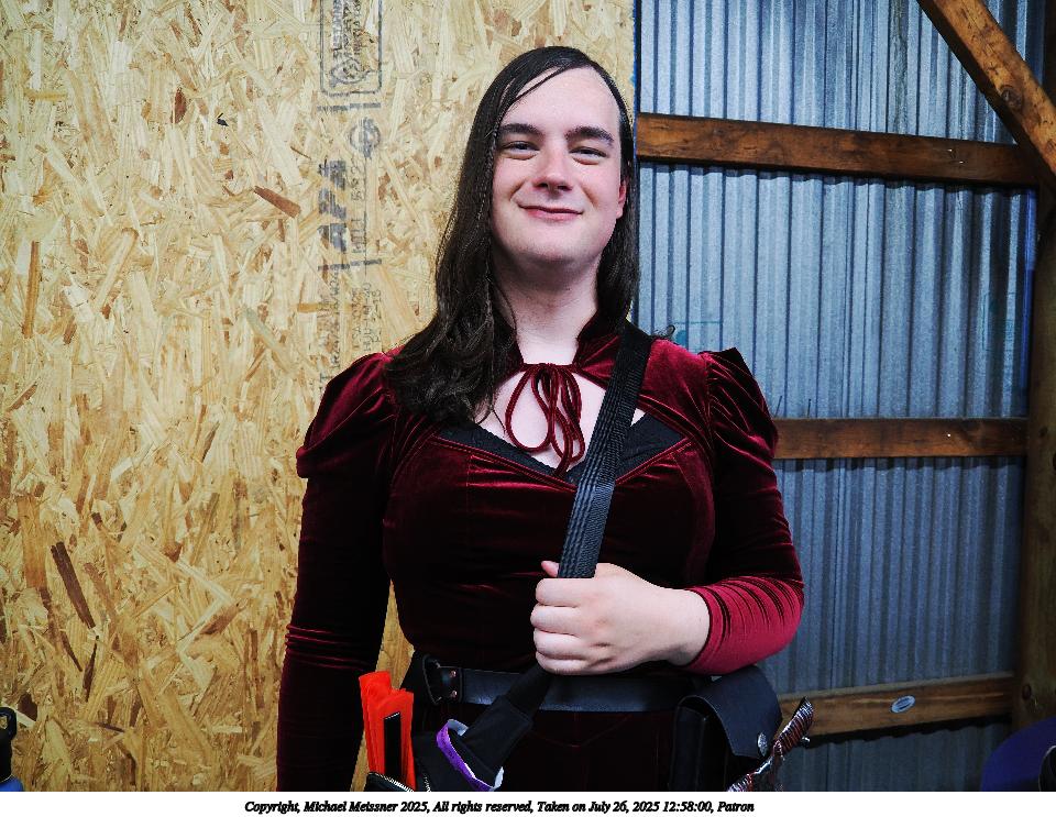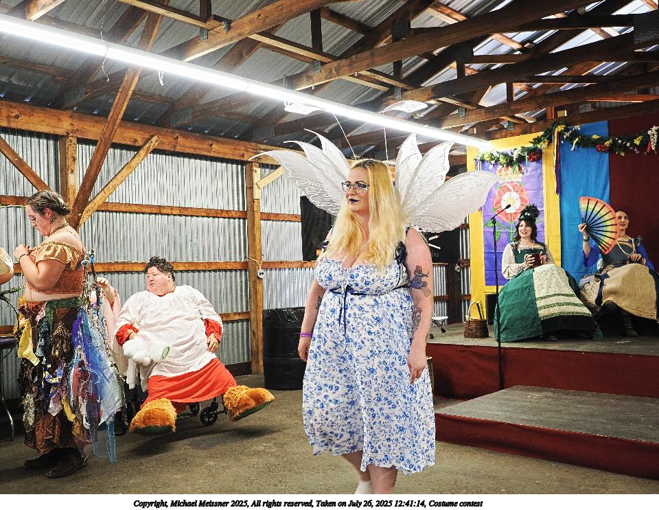 Picture #30: Costume contest #28 Small: 800x623, 137,040 bytes (134K), (html file) Large: 2400x1800, 3,597,874 bytes (3.4M), (html file) Copyright, Michael Meissner 2025, All rights reserved OM OM1 camera with Olympus-m43 12-40mm f/2.8 lens f/3.2, ISO 2000, 1/125 sec, 26.0mm, auto mode, vivid color, matrix metering, IS Auto, face detection, anti-shock 35mm equivalent focal length 52.0mm Programs used: crop, gimp, raw therapee Taken by Michael Meissner on July 26, 2025 12:30:09 Last modified on August 12, 2025 at 00:19 |
