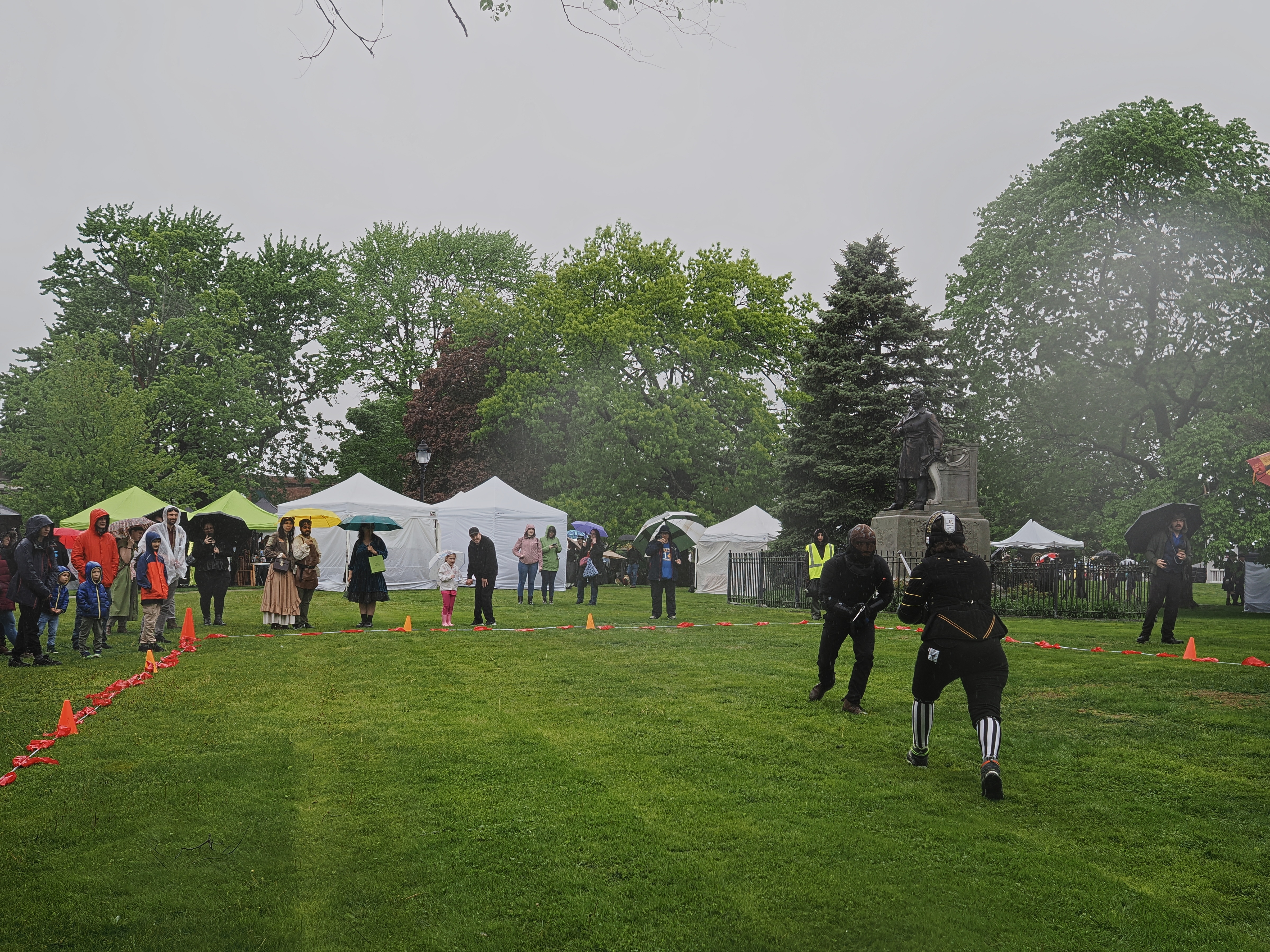 Picture #27: Sword fighting demonstration Small: 960x743, 219,253 bytes (215K), (html file) Large: 4800x3600, 5,704,591 bytes (5.4M), (html file) Copyright, Michael Meissner 2025, All rights reserved OM OM3 camera with OM 17mm-II f/1.8 lens f/4.5, ISO 200, 1/400 sec, 17.0mm, auto mode, vivid color, matrix metering, continous focus, IS Auto, face detection 35mm equivalent focal length 34.0mm Programs used: crop, raw therapee Taken by Michael Meissner on May 10, 2025 12:15:12 Last modified on May 11, 2025 at 20:54 |