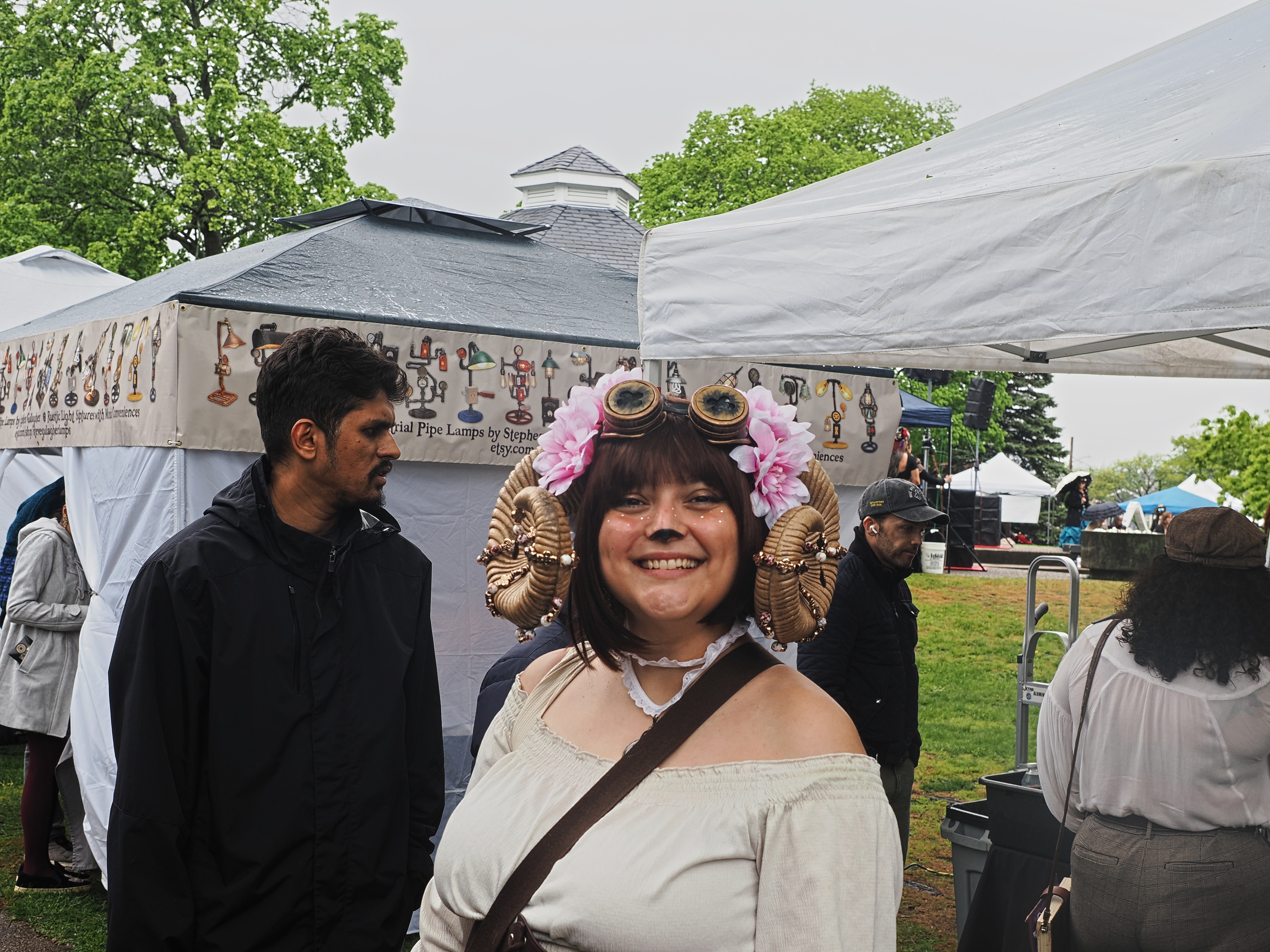 Picture #16: Watch City patron Small: 960x743, 213,985 bytes (209K), (html file) Large: 4800x3600, 4,880,552 bytes (4.7M), (html file) Copyright, Michael Meissner 2025, All rights reserved OM OM3 camera with OM 17mm-II f/1.8 lens f/4.0, ISO 200, 1/320 sec, 17.0mm, auto mode, vivid color, matrix metering, continous focus, IS Auto, face detection 35mm equivalent focal length 34.0mm Programs used: crop, raw therapee Taken by Michael Meissner on May 10, 2025 11:56:45 Last modified on May 11, 2025 at 20:28 |