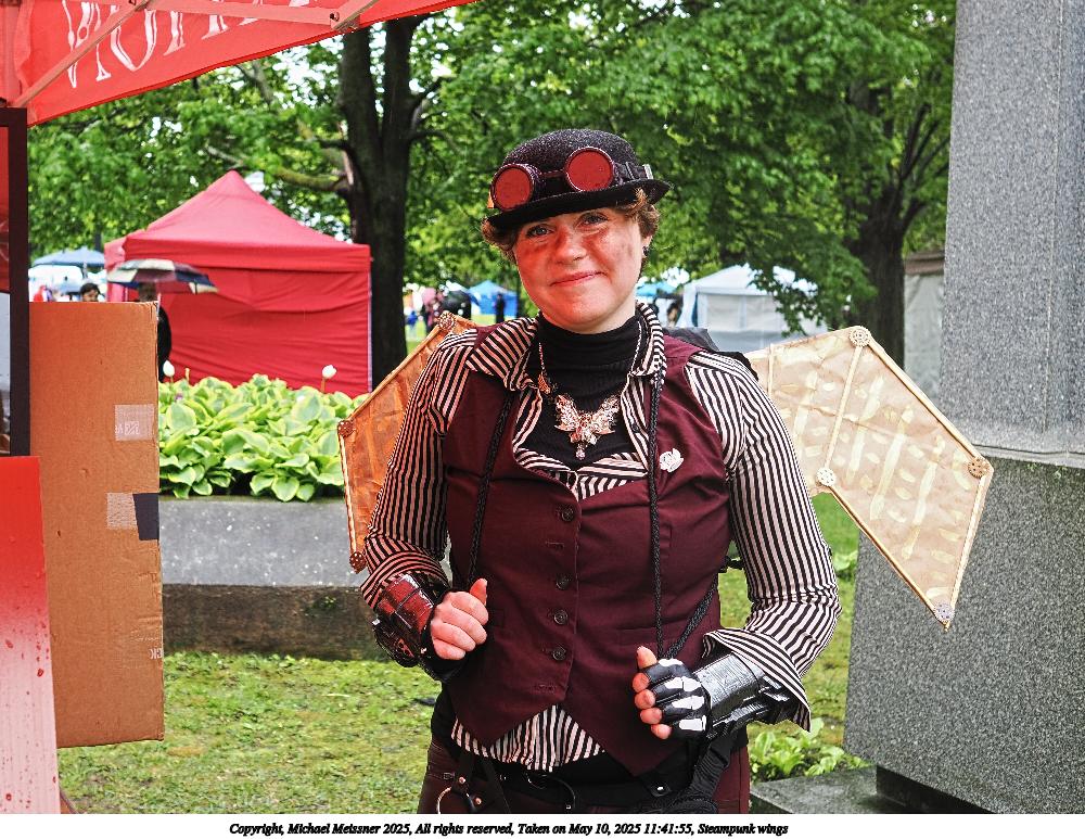 Picture #6: Steampunk wings Small: 1000x773, 213,166 bytes (209K), (html file) Large: 4000x3000, 11,438,392 bytes (11M), (html file) Copyright, Michael Meissner 2025, All rights reserved OM OM3 camera with OM 17mm-II f/1.8 lens f/3.2, ISO 200, 1/200 sec, 17.0mm, auto mode, vivid color, matrix metering, continous focus, IS Auto, face detection, anti-shock 35mm equivalent focal length 34.0mm Programs used: crop, raw therapee, rawtherapee-helper Taken by Michael Meissner on May 10, 2025 11:41:51 Last modified on May 11, 2025 at 20:05 |