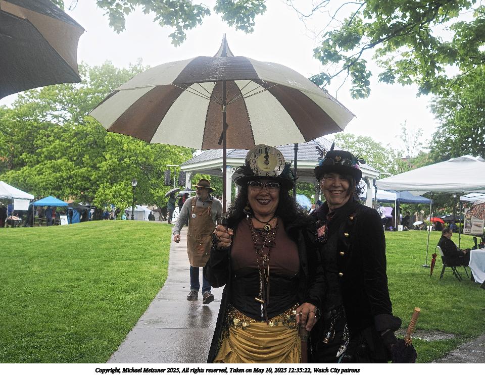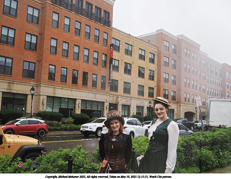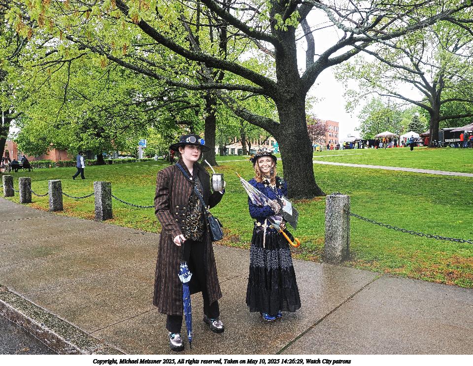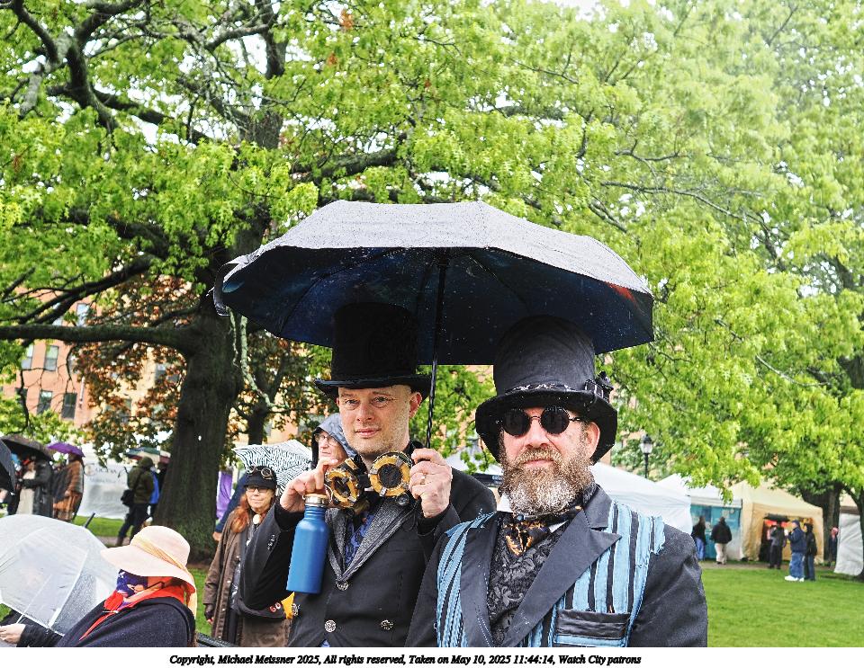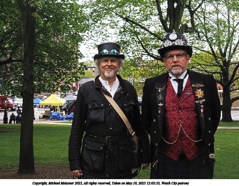 Picture #33: Watch City patrons #7 Small: 960x743, 117,626 bytes (115K), (html file) Large: 4800x3600, 2,618,540 bytes (2.5M), (html file) Copyright, Michael Meissner 2025, All rights reserved OM OM3 camera with OM 17mm-II f/1.8 lens f/4.5, ISO 200, 1/400 sec, 17.0mm, auto mode, vivid color, matrix metering, digital zoom x2, continous focus, IS Auto, face detection 35mm equivalent focal length 68.0mm, digital zoom x2 Programs used: crop, raw therapee Taken by Michael Meissner on May 10, 2025 12:22:42 Last modified on May 11, 2025 at 20:55 |