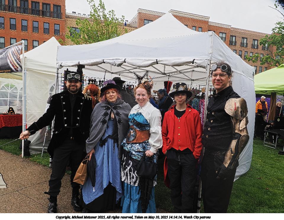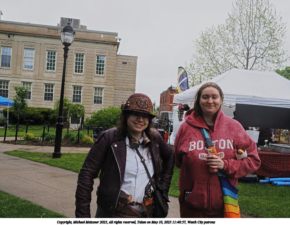 Picture #29: Watch City patrons #6 Small: 960x743, 196,662 bytes (193K), (html file) Large: 4800x3600, 4,926,952 bytes (4.7M), (html file) Copyright, Michael Meissner 2025, All rights reserved OM OM3 camera with OM 17mm-II f/1.8 lens f/4.5, ISO 200, 1/400 sec, 17.0mm, auto mode, vivid color, matrix metering, continous focus, IS Auto, face detection 35mm equivalent focal length 34.0mm Programs used: crop, raw therapee Taken by Michael Meissner on May 10, 2025 12:15:51 Last modified on May 11, 2025 at 20:55 |