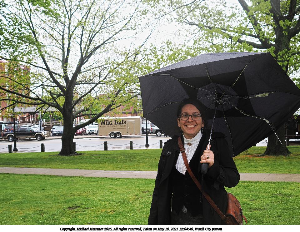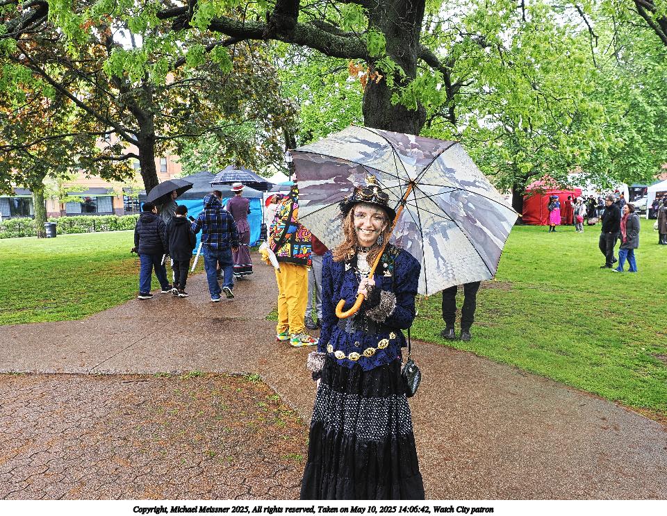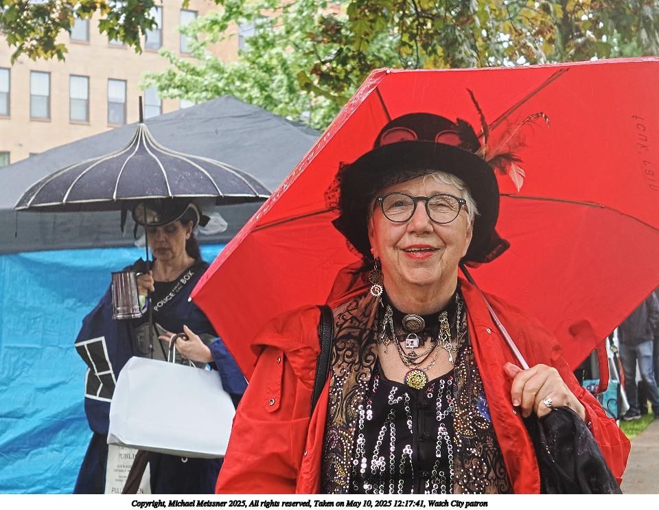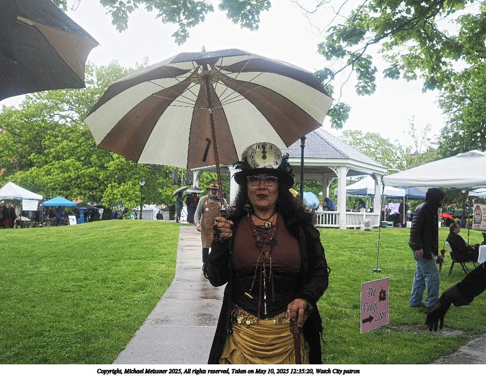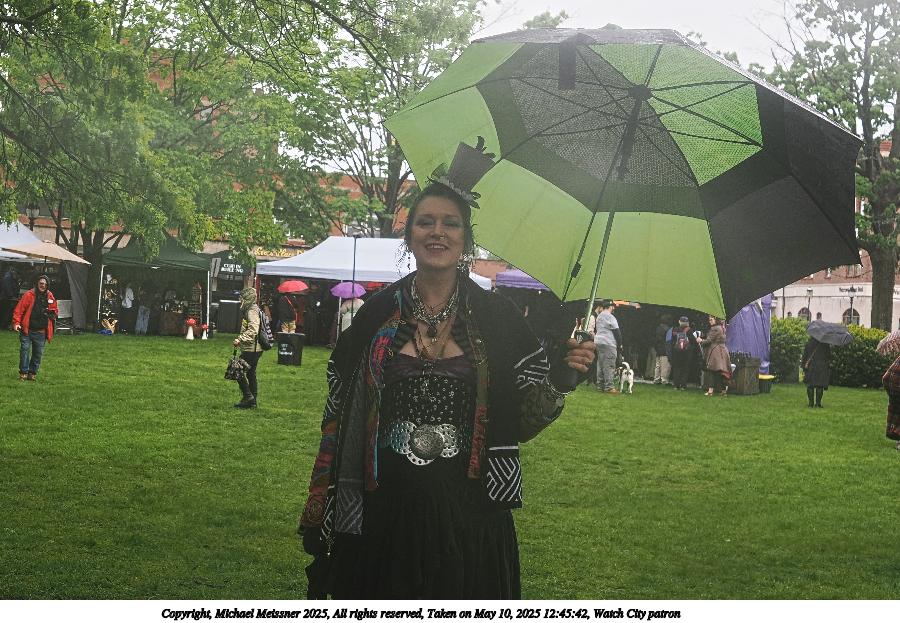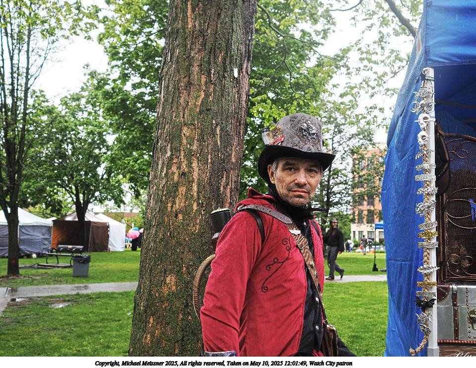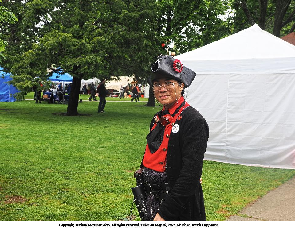 Picture #30: Watch City patron #4 Small: 960x743, 154,558 bytes (151K), (html file) Large: 4800x3600, 3,458,138 bytes (3.3M), (html file) Copyright, Michael Meissner 2025, All rights reserved OM OM3 camera with OM 17mm-II f/1.8 lens f/2.8, ISO 200, 1/160 sec, 17.0mm, auto mode, vivid color, matrix metering, digital zoom x2, continous focus, IS Auto, face detection, anti-shock 35mm equivalent focal length 68.0mm, digital zoom x2 Programs used: crop, raw therapee Taken by Michael Meissner on May 10, 2025 12:17:41 Last modified on May 11, 2025 at 20:55 |