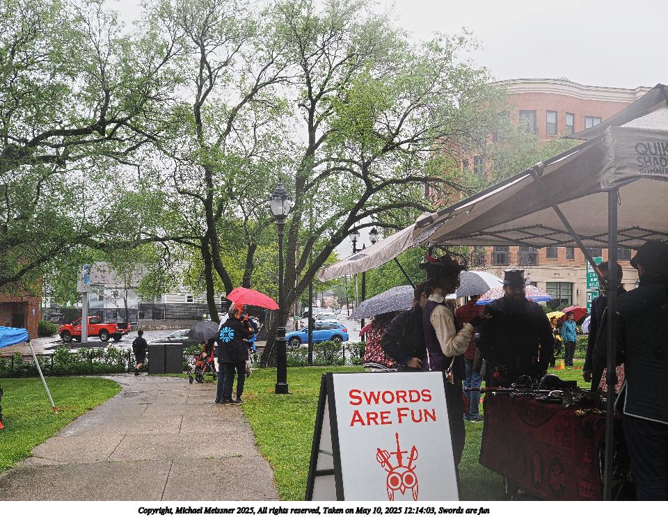 Picture #26: Swords are fun Small: 960x743, 259,609 bytes (254K), (html file) Large: 4800x3600, 6,646,180 bytes (6.3M), (html file) Copyright, Michael Meissner 2025, All rights reserved OM OM3 camera with OM 17mm-II f/1.8 lens f/4.0, ISO 200, 1/320 sec, 17.0mm, auto mode, vivid color, matrix metering, continous focus, IS Auto, face detection 35mm equivalent focal length 34.0mm Programs used: crop, raw therapee Taken by Michael Meissner on May 10, 2025 12:14:03 Last modified on May 11, 2025 at 20:53 |