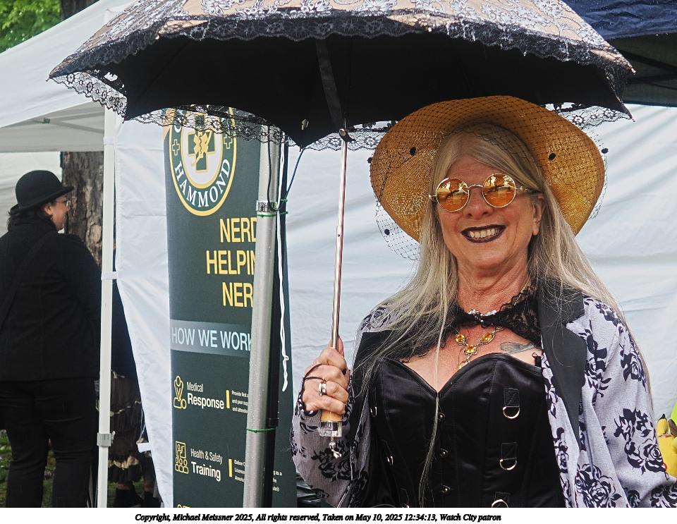 Picture #55: Watch City patron #14 Small: 960x743, 338,371 bytes (331K), (html file) Large: 4800x3600, 9,035,577 bytes (8.6M), (html file) Copyright, Michael Meissner 2025, All rights reserved OM OM1 camera with Olympus-m43 12-40mm f/2.8 lens f/4.5, ISO 200, flash, 1/160 sec, 14.0mm, auto mode, vivid color, matrix metering, continous focus, IS Auto, face detection, anti-shock 35mm equivalent focal length 28.0mm Programs used: crop, raw therapee Taken by Michael Meissner on May 10, 2025 14:07:33 Last modified on May 11, 2025 at 21:20 |