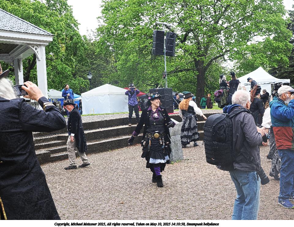 Picture #46: Steampunk bellydance Small: 960x743, 292,956 bytes (287K), (html file) Large: 4800x3600, 7,822,875 bytes (7.5M), (html file) Copyright, Michael Meissner 2025, All rights reserved OM OM1 camera with Olympus-m43 12-40mm f/2.8 lens f/5.0, ISO 200, flash, 1/250 sec, 40.0mm, auto mode, vivid color, matrix metering, continous focus, IS Auto, anti-shock 35mm equivalent focal length 80.0mm Programs used: crop, raw therapee Taken by Michael Meissner on May 10, 2025 13:39:04 Last modified on May 11, 2025 at 21:08 |