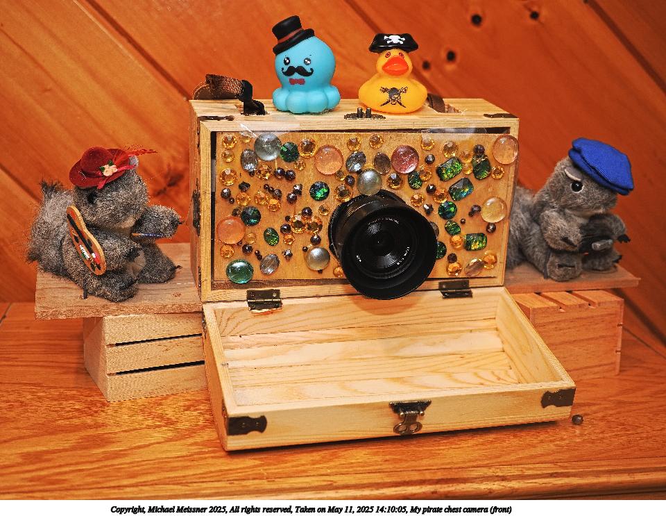 Picture #3: My pirate chest camera (front) Small: 960x743, 168,629 bytes (165K), (html file) Large: 4800x3600, 4,774,319 bytes (4.6M), (html file) Copyright, Michael Meissner 2025, All rights reserved OM OM1 camera with Olympus-m43 12-40mm f/2.8 lens f/2.8, ISO 200, FL-50R flash, 1/60 sec, 25.0mm, auto mode, vivid color, matrix metering, continous focus, IS Auto, face detection, anti-shock 35mm equivalent focal length 50.0mm Programs used: crop, raw therapee Taken by Michael Meissner on May 11, 2025 14:10:05 Last modified on May 11, 2025 at 16:27 |