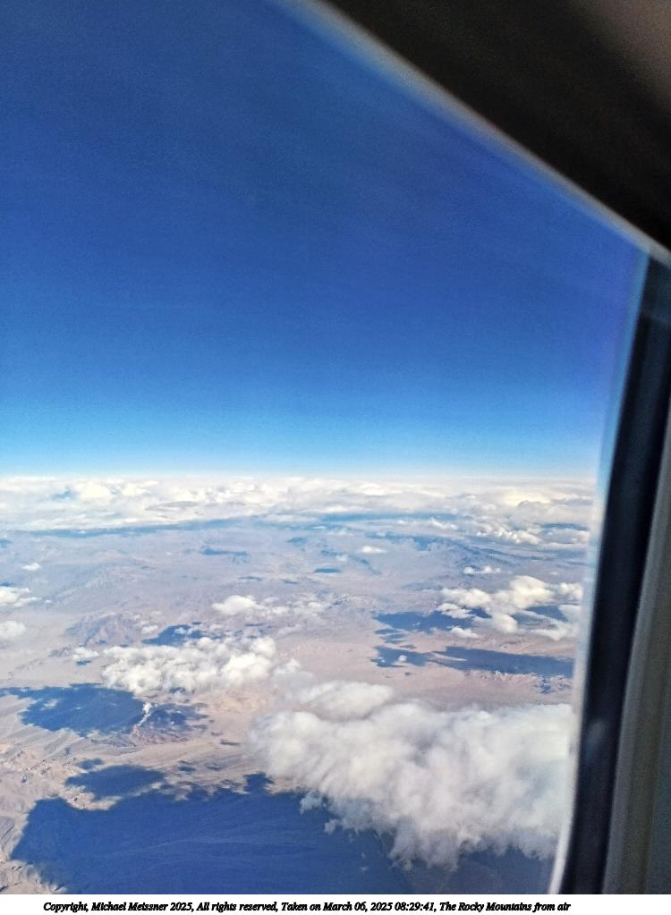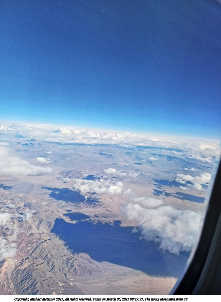 Picture #3: The Rocky Mountains from air #3 750x1023, 77,604 bytes (76K), (html file) Copyright, Michael Meissner 2025, All rights reserved Samsung A32 5G phone f/1.8, ISO 32, 1/383 sec, 4.6mm, auto mode, spot metering 35mm equivalent focal length 25.0mm Programs used: raw therapee, rotate right Taken by Michael Meissner on March 06, 2025 08:29:51 Last modified on March 15, 2025 at 22:47 |