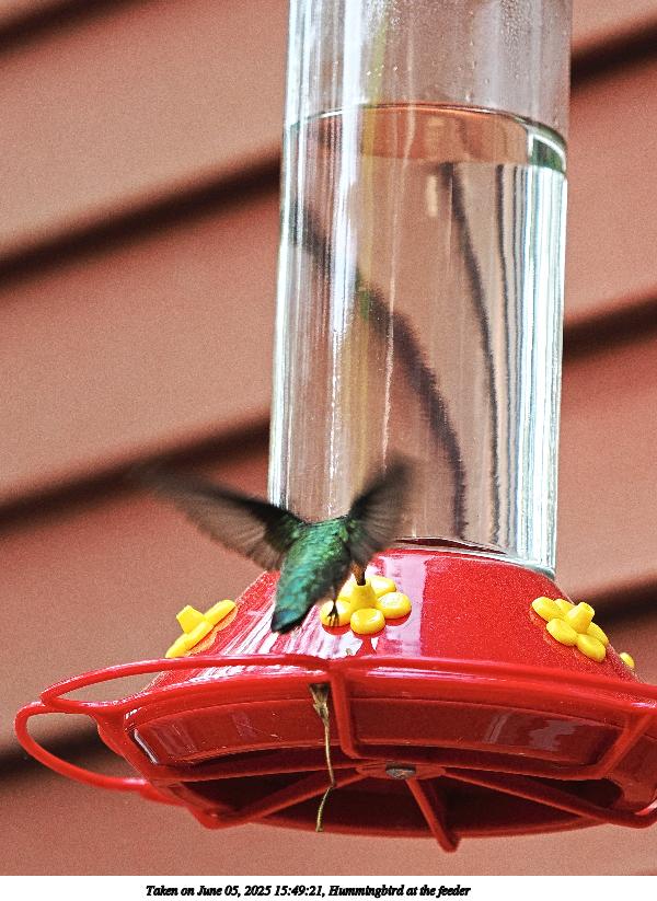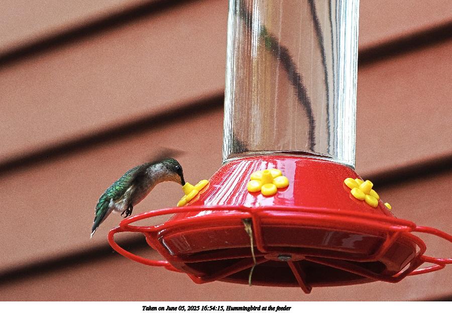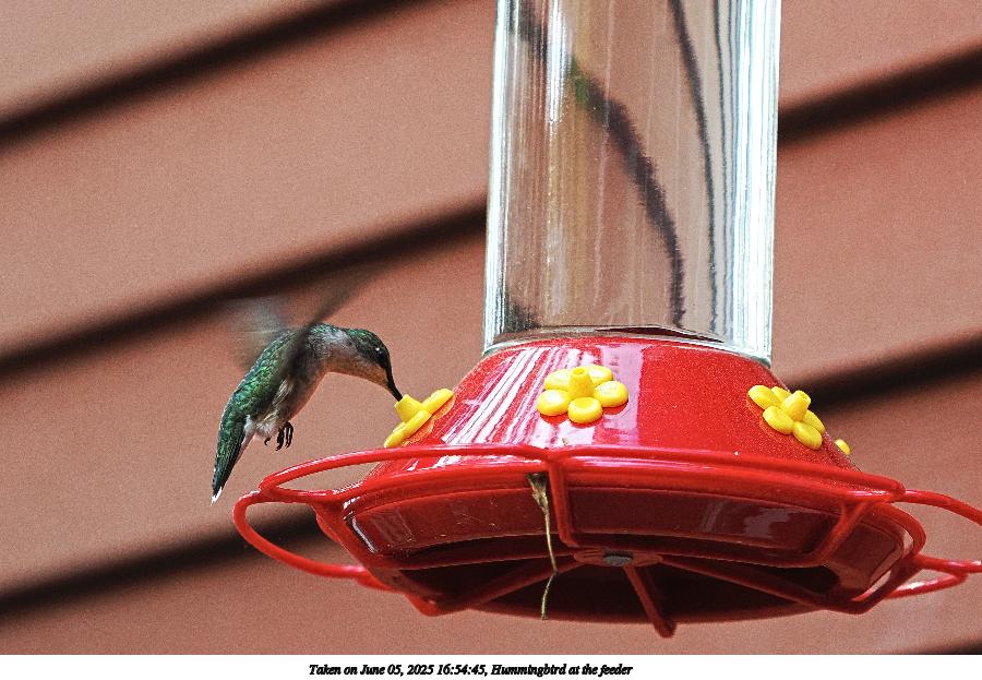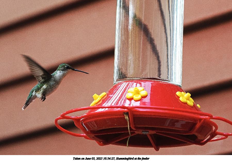 Picture #5: Hummingbird at the feeder #4 900x623, 119,421 bytes (117K), (html file) OM OM1 camera with Olympus-m43 40-150mm f/2.8 lens f/2.8, ISO 1250, 1/1000 sec, 79.0mm, auto mode, vivid color, matrix metering, IS Auto, face detection 35mm equivalent focal length 158.0mm Programs used: crop, raw therapee, rotate left Taken by Michael Meissner on June 05, 2025 16:54:20 Last modified on June 06, 2025 at 01:28 |