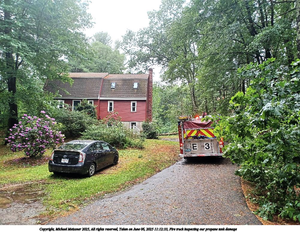 Picture #2: Fire truck inspecting our propane tank damage #2 1000x773, 339,856 bytes (332K), (html file) Copyright, Michael Meissner 2025, All rights reserved Samsung A32 5G phone f/1.8, ISO 64, 1/120 sec, 4.6mm, auto mode, center weight metering 35mm equivalent focal length 25.0mm Programs used: raw therapee Taken by Michael Meissner on June 06, 2025 11:12:33 Last modified on June 06, 2025 at 14:18 |