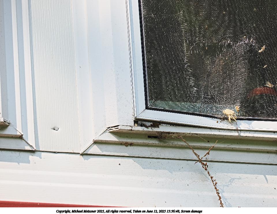 Picture #13: Siding damage 960x743, 132,963 bytes (130K), (html file) Copyright, Michael Meissner 2025, All rights reserved OM OM3 camera with Olympus-m43 12-200mm f/3.5-6.3 lens f/6.3, ISO 200, 1/60 sec, 200.0mm, auto mode, vivid color, matrix metering, bias 0.3, continous focus, IS Auto, face detection, anti-shock 35mm equivalent focal length 401.0mm Programs used: crop, raw therapee Taken by Michael Meissner on June 12, 2025 15:56:54 Last modified on June 15, 2025 at 22:53 |