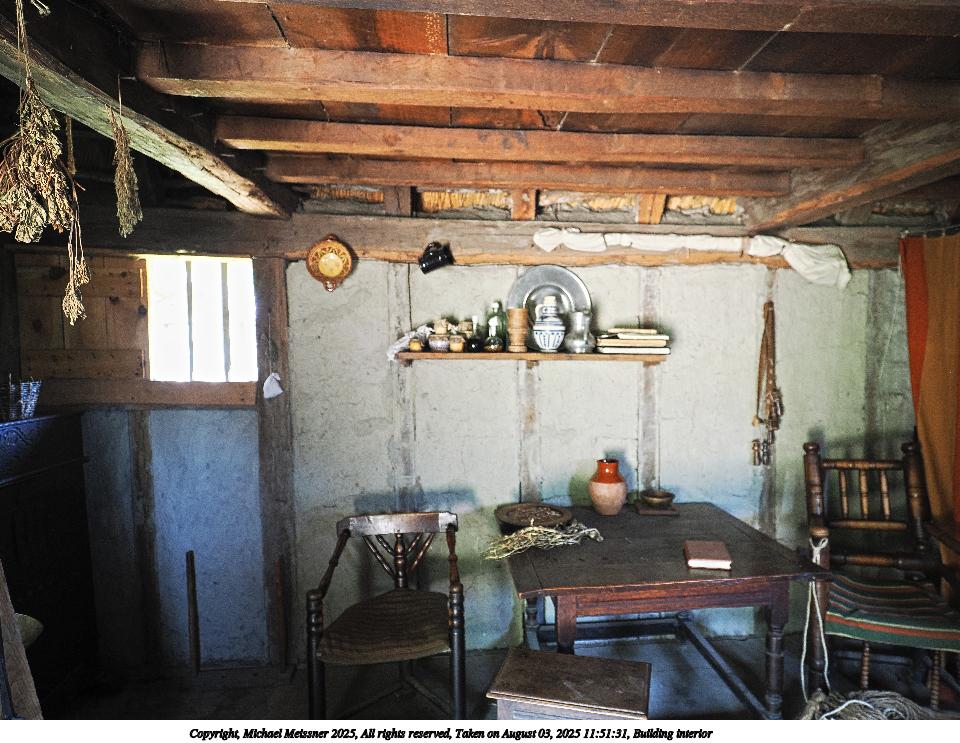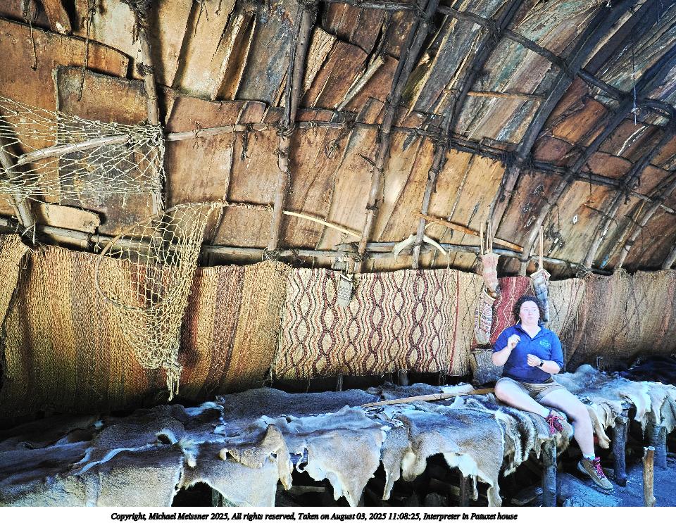 Picture #203: Interpreter in Patuxet house #3 960x743, 277,505 bytes (272K), (html file) Copyright, Michael Meissner 2025, All rights reserved OM OM1 camera with Olympus-m43 7-14mm f/2.8 lens f/2.8, ISO 1250, 1/60 sec, 9.0mm, auto mode, vivid color, matrix metering, IS Auto, anti-shock 35mm equivalent focal length 18.0mm Programs used: crop, raw therapee Taken by Michael Meissner on August 03, 2025 11:08:25 Last modified on August 22, 2025 at 21:59 |