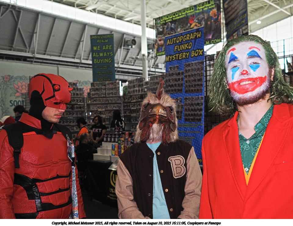 Picture #132: Cosplayers at Fanexpo #8 960x743, 153,046 bytes (150K), (html file) Copyright, Michael Meissner 2025, All rights reserved OM OM3 camera with OM 17mm-II f/1.8 lens f/2.2, ISO 200, flash, 1/100 sec, 17.0mm, auto mode, vivid color, matrix metering, IS Auto, face detection, anti-shock 35mm equivalent focal length 34.0mm Programs used: crop, raw therapee Taken by Michael Meissner on August 10, 2025 16:21:23 Last modified on August 23, 2025 at 00:22 |