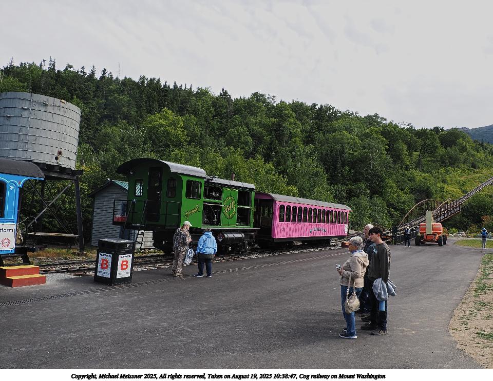 Picture #119: Cog railway on Mount Washington #4 960x743, 140,088 bytes (137K), (html file) Copyright, Michael Meissner 2025, All rights reserved OM OM1 camera with Olympus-m43 12-200mm f/3.5-6.3 lens f/5.0, ISO 200, 1/100 sec, 13.0mm, auto mode, vivid color, matrix metering, digital zoom x2, IS Auto, anti-shock 35mm equivalent focal length 52.0mm, digital zoom x2 Programs used: crop, raw therapee Taken by Michael Meissner on August 19, 2025 10:55:08 Last modified on August 23, 2025 at 17:14 |